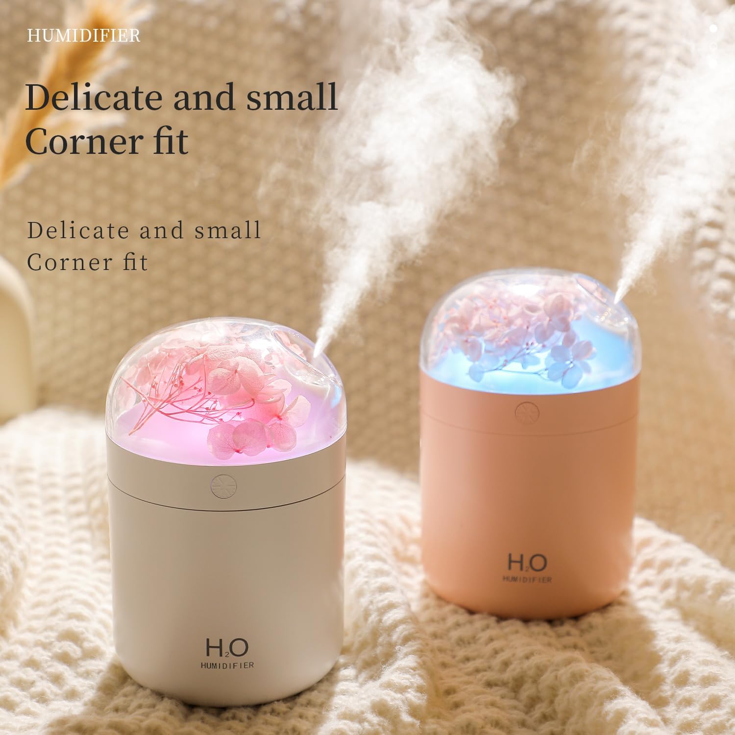 Portable Small Hydrangea Humidifiers for Bedroom Baby, Mini Cool Mist Plant Humidifier for Plants, Quiet Desktop Humidifier with 2 Working Modes & Colorful Night Light for Travel, Office, Bedroom