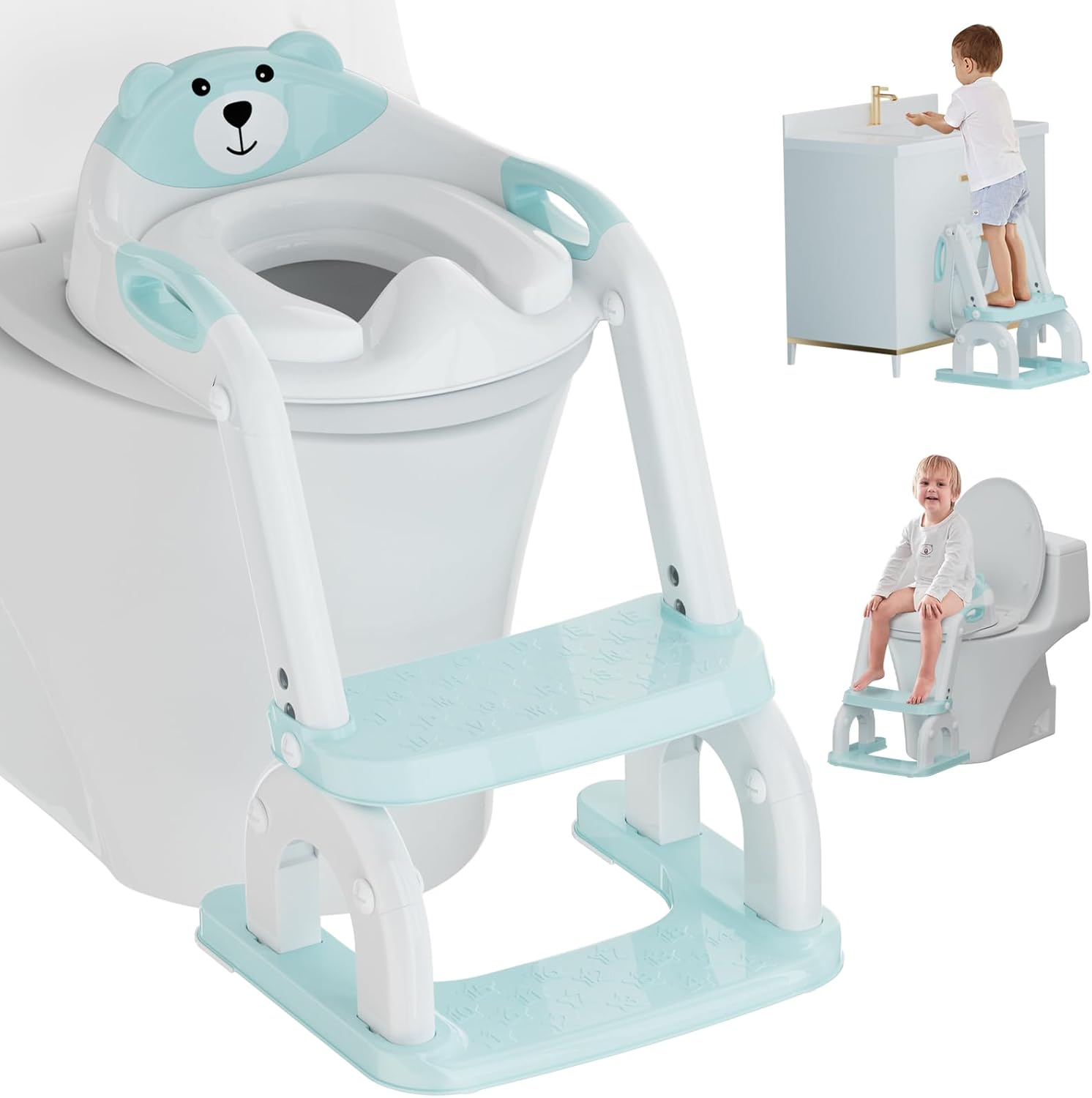 - 💡[LIGHT WEIGHT & FOLDBLE DESIGN]: Ingenious 1 second foldable design for space savings at home or effortless portability in your car. It's lightweight for toddlers to pick up and move anywhere around the house, this potty seat with ladder helps kids feel empowered as they perform daily tasks independently.