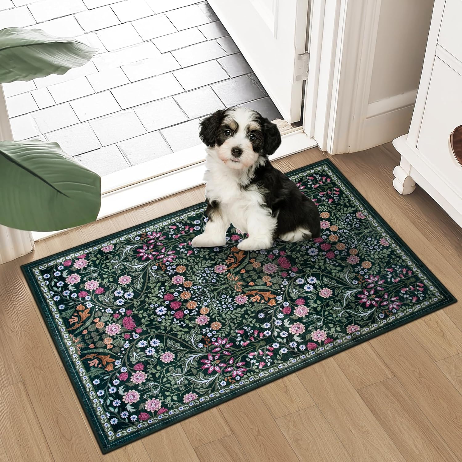 - Elegant Floral Rug: This 2x3 area rug vintage-inspired botanical rug blends rich dark greens, vibrant and delicate floral complements any decor style, from vintage and bohemian to farmhouse and modern. Perfect rugs for Entryway, Bedroom, Kitchen, Laundry, Bathroom, kids' playrooms, Hallway or home offices, it adds warmth and charm to any space. Both durable and stylish, it withstands high-traffic areas while maintaining a cozy, inviting appeal