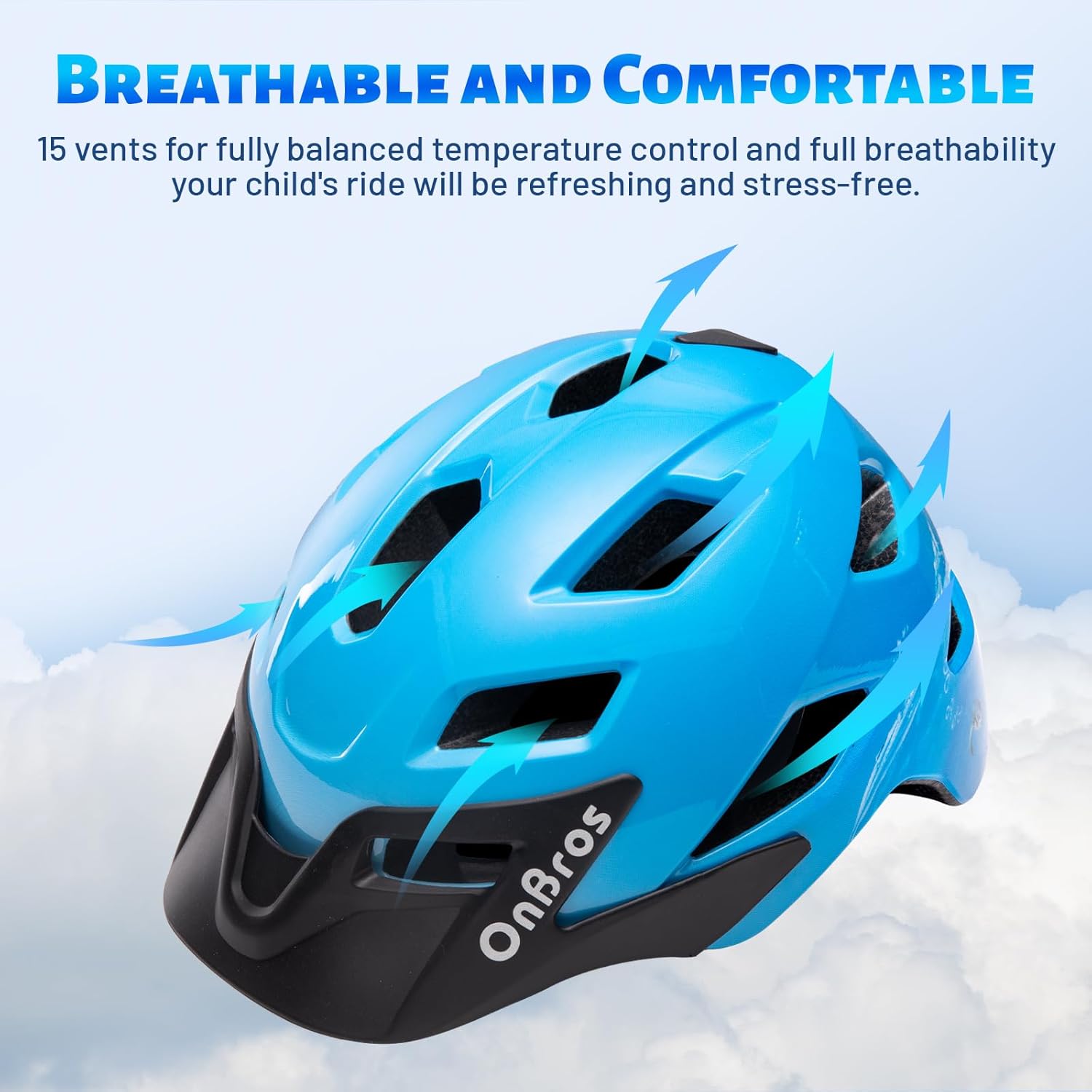 OnBros Kids Bike Helmet - Bike Helmets for 5-14 Boys or Girls with Visor, Children Bicycle Helmet for Skateboard Mountain Scooter Road Cycling, Lightweight and Adjustable 50-57CM