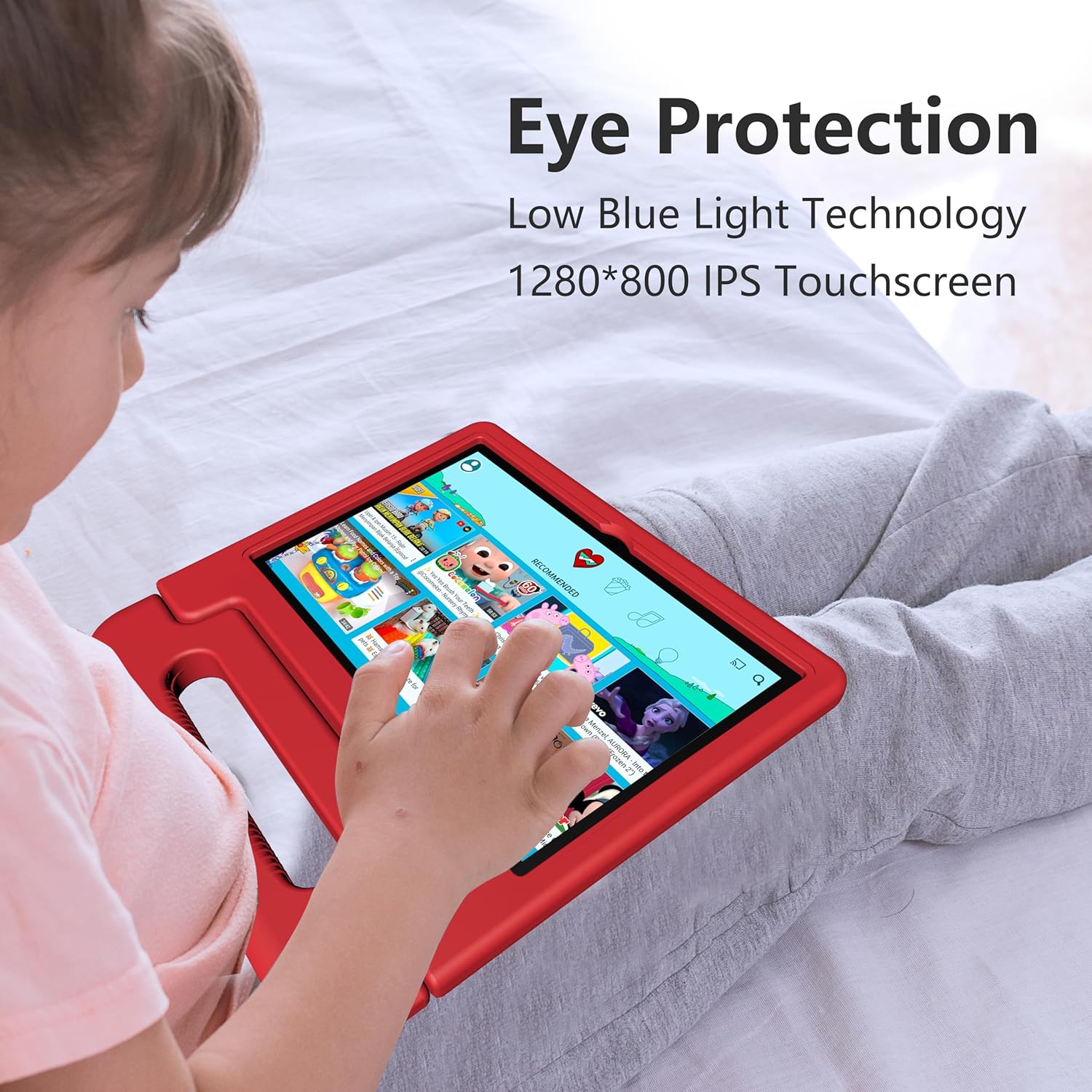 - Vibrant 10 Inch IPS Display: The 10.1" 1280 x 800 HD display features low blue light technology and an IPS 180° viewing angle, delivers crisp visuals, ensuring kids can enjoy interactive learning, games, and videos on this tablet.