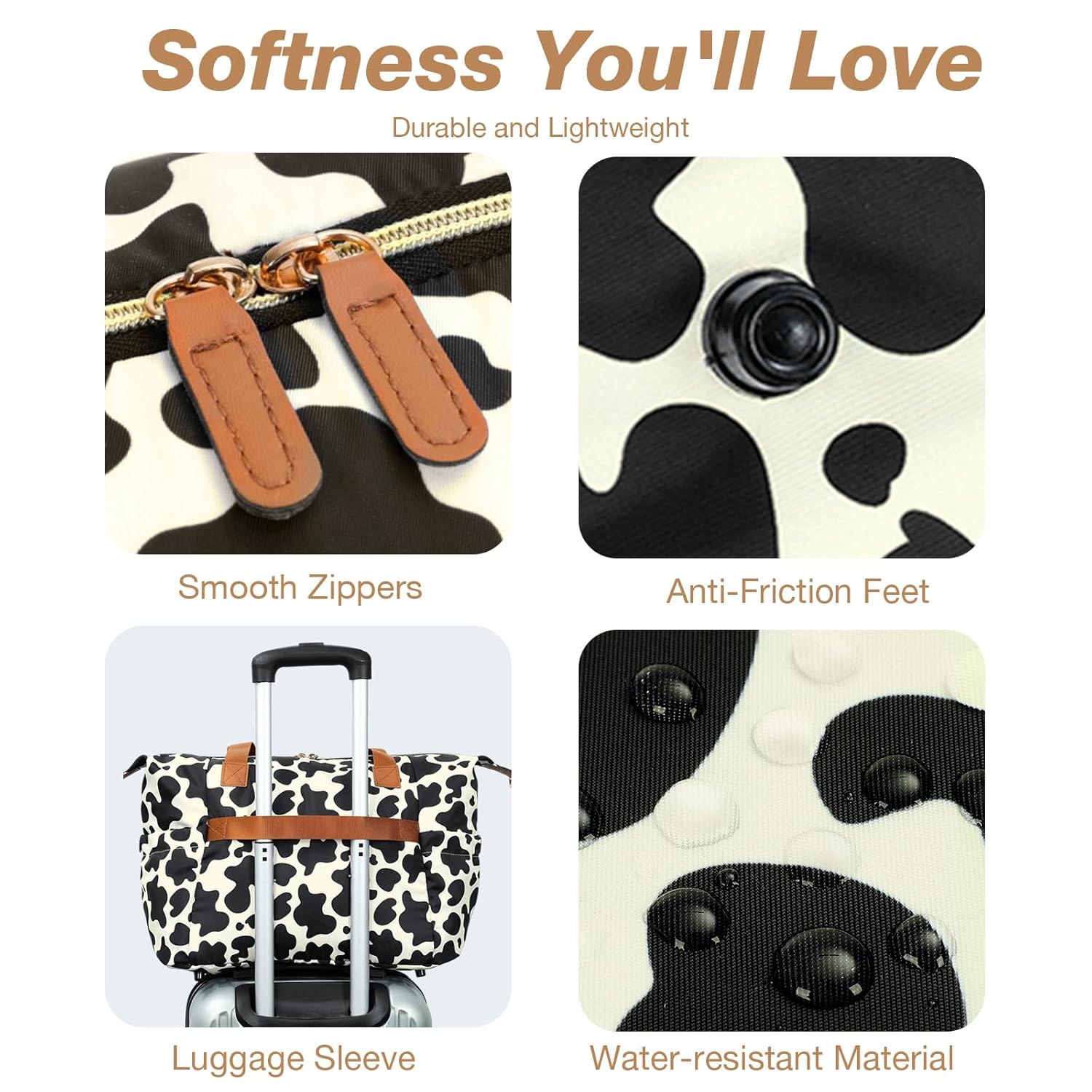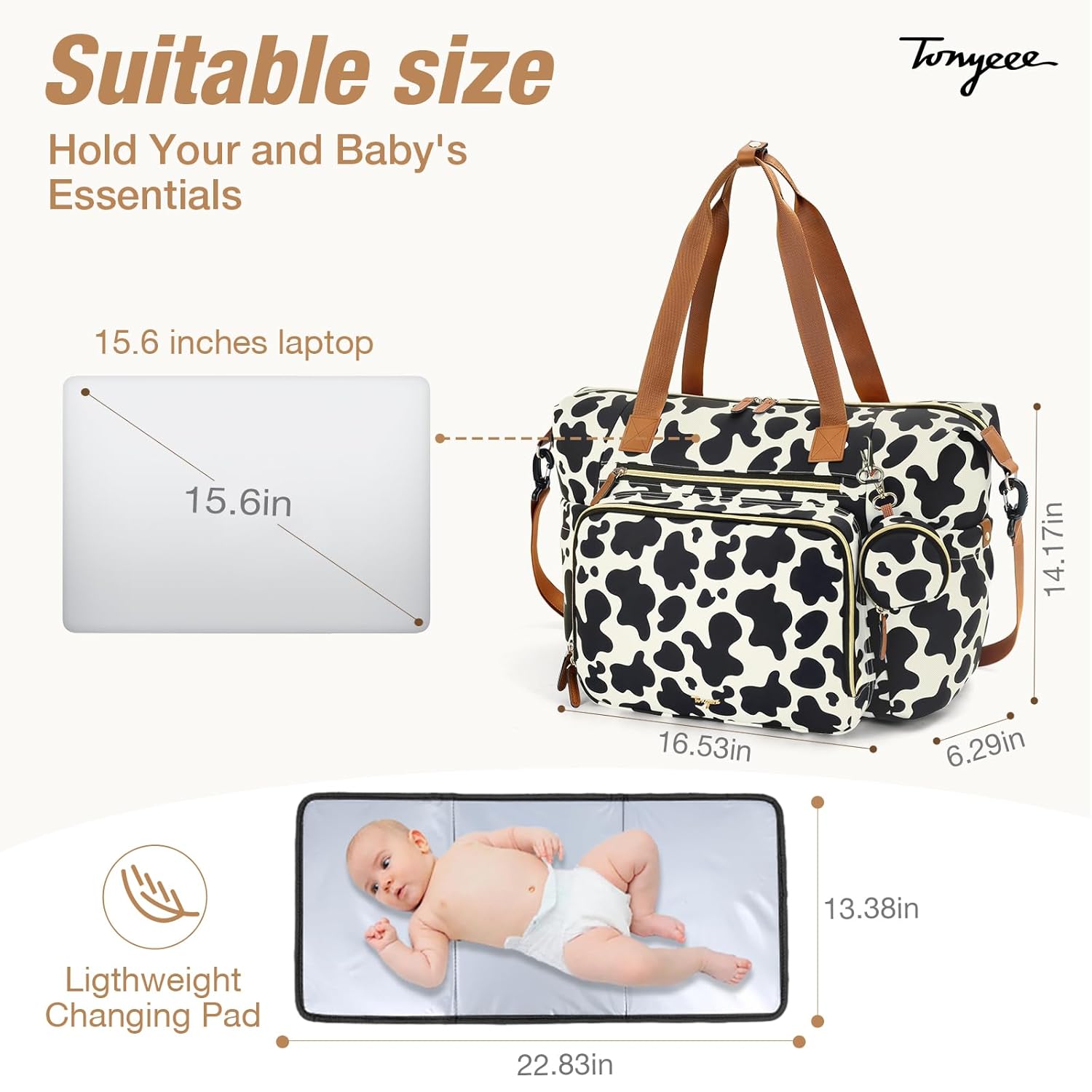 Diaper Bag Tote, Large Baby Diaper Bags for Travel, Hospital Bag for Labor Delivery with Pacifier Case, Changing Pad, Shoulder Strap, Cow Print