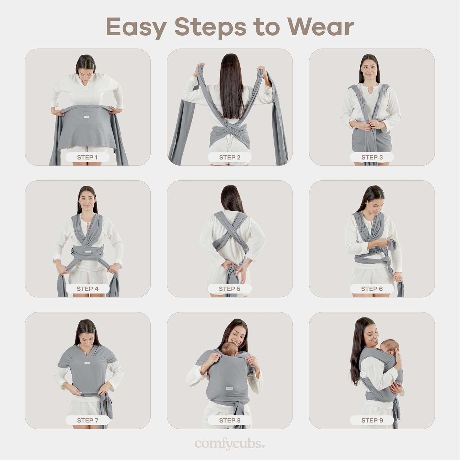 - Versatile Carrying Positions for Every Moment: Whether snuggling your baby close, supporting legs apart for healthy hip development, or using it for hands-free feeding, the Comfy Cubs sling baby carrier adapts to your needs. Our baby carriers are designed for comfort and security, it promotes bonding while keeping your little one snug and supported.