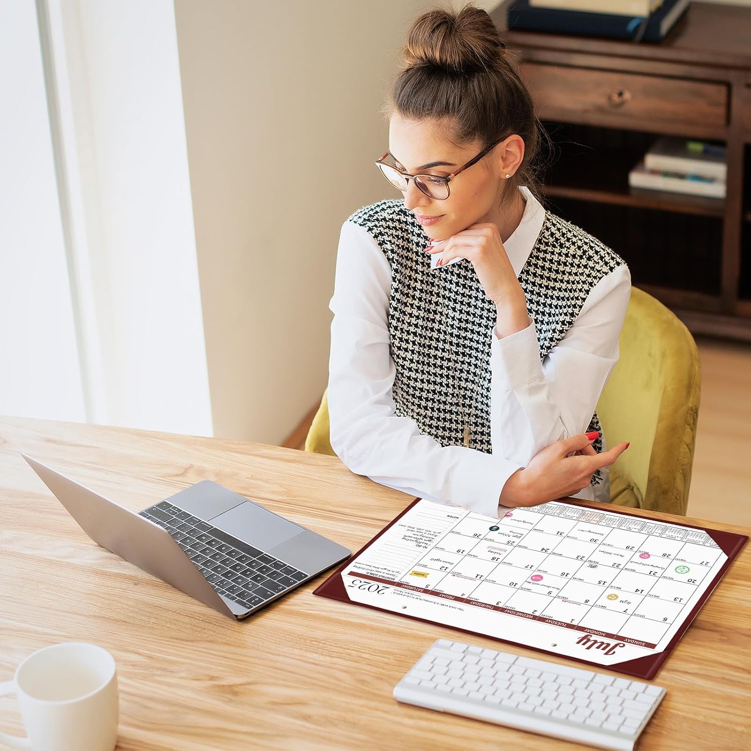 Ospelelf Desk Calendar 2025-2026 Wall Monthly Planner 12"x17" Leather Pad with Protective Cover 18 Months July 2025 to December 2026 Brown
