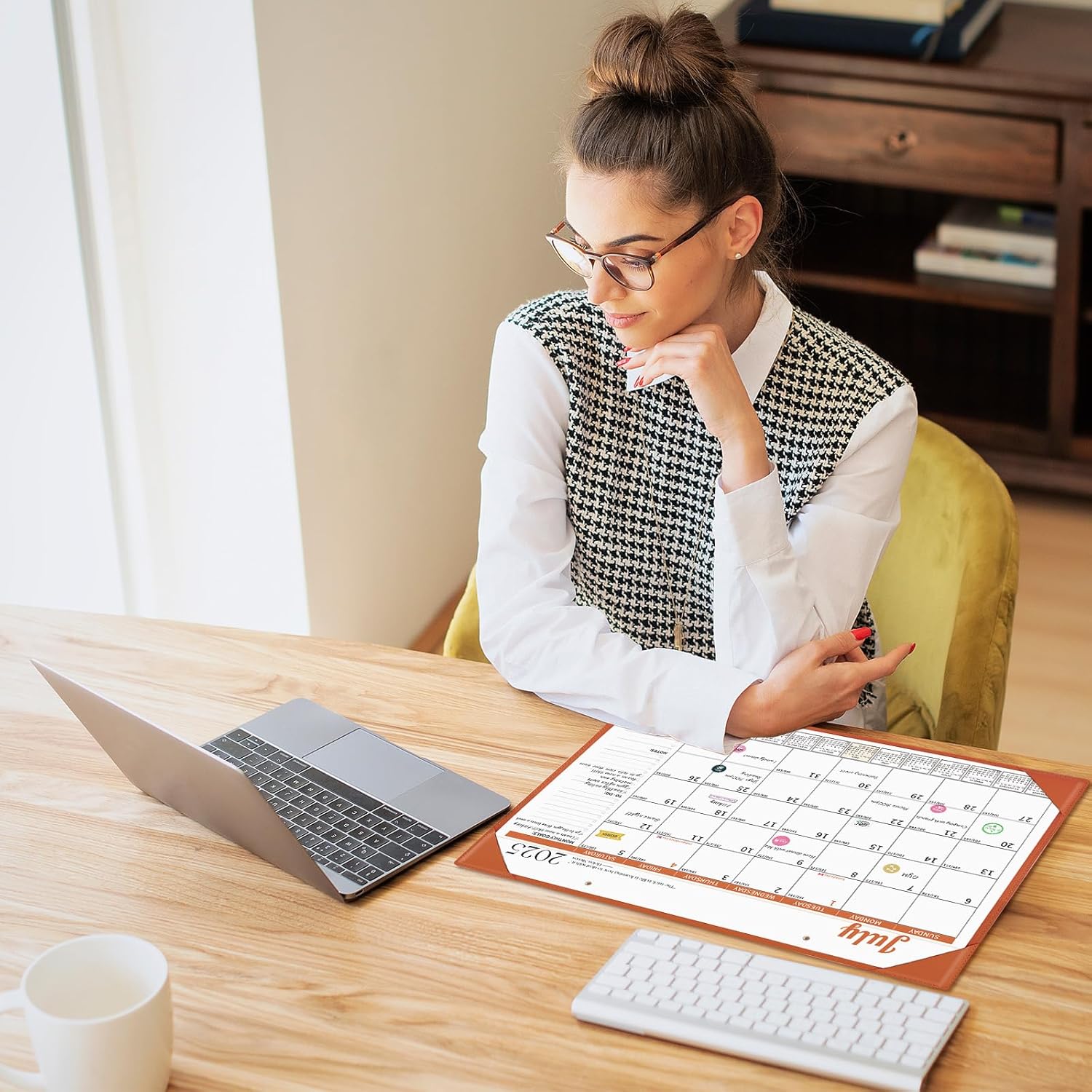 - Monthly Desk Calendar with Stickers: One month per page layout help you organize your monthly plans and goals. The calendar set includes planning stickers. A variety of planning stickers can also add some interest to the calendar.
