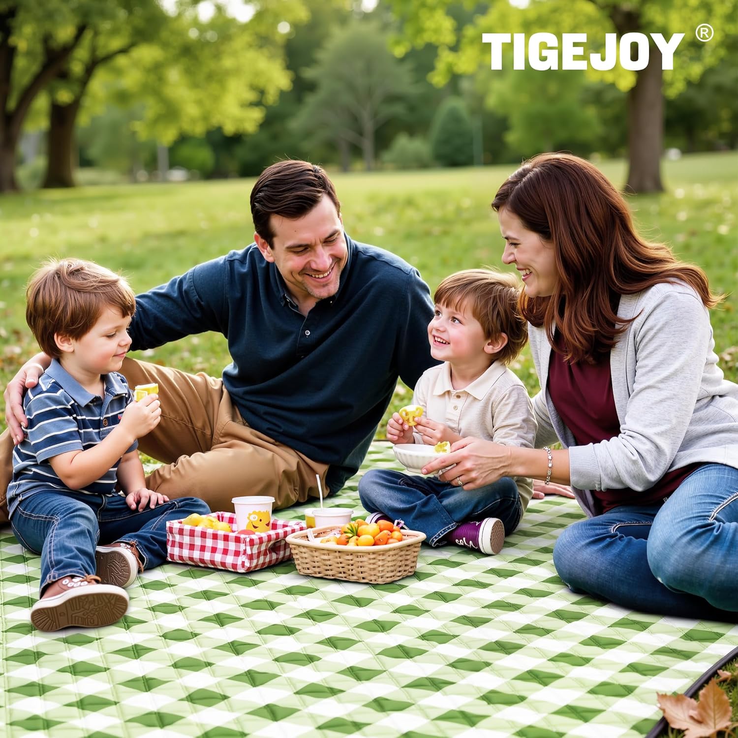 - Thicker Filler for Comfort: TigeJoy picnic blanket is fully upgraded for next-level comfort. Thick, high-resilience cotton padding offers better support and softness. Whether sitting or lying down, you can fully relax, even on hard or uneven ground.
