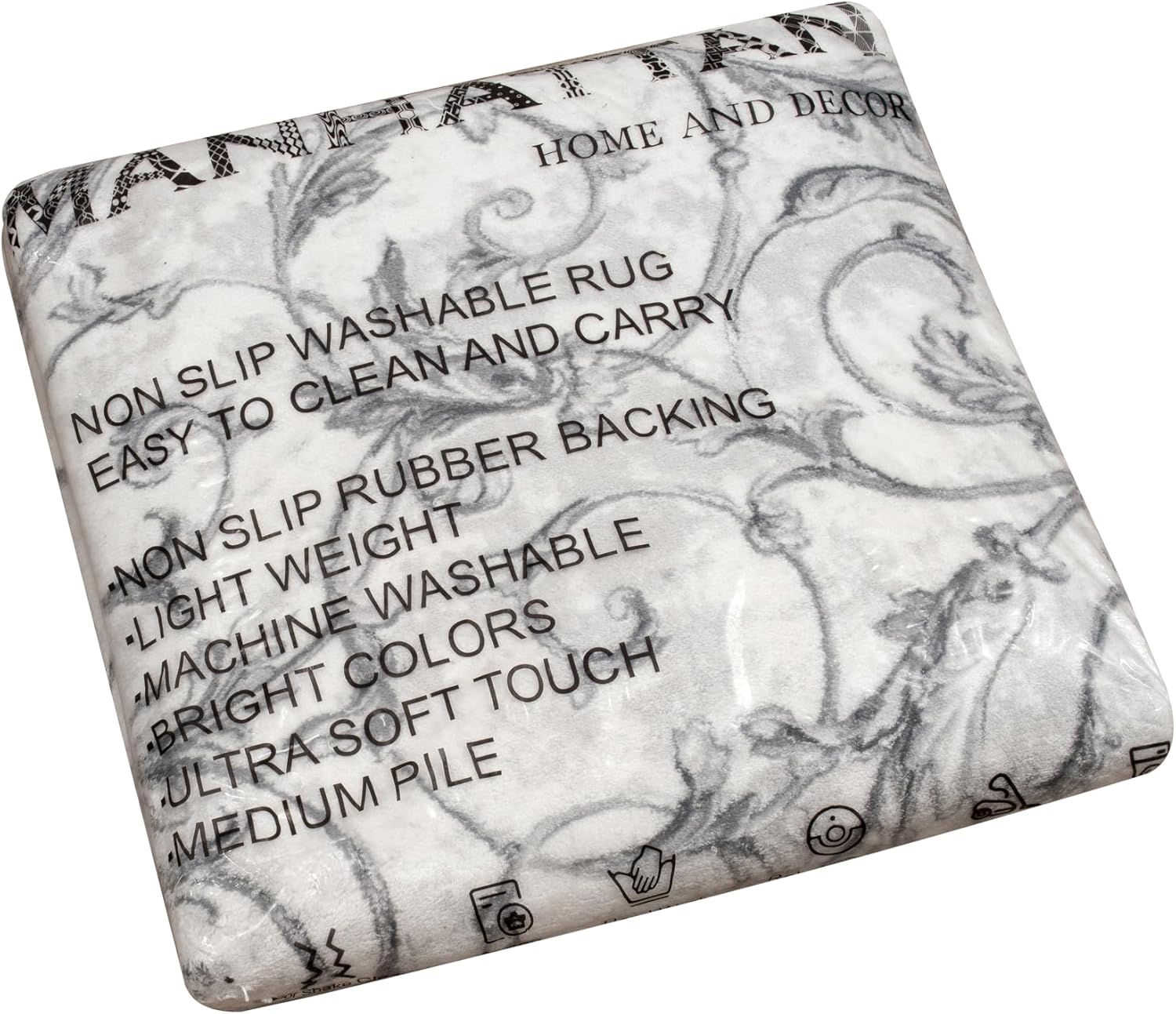 - Non-Slip Safety, No more slipping or sliding, Our 5x7 floral grey area rug features a high-quality rubberized backing that keeps it firmly in place, even in high-traffic areas or on hardwood floors. The 0.43 inch medium-pile carpet is more durable, easier to clean, and ideal for high-traffic areas. It looks great under a coffee table, in front of a couch, by your bed, or in your entryway.
