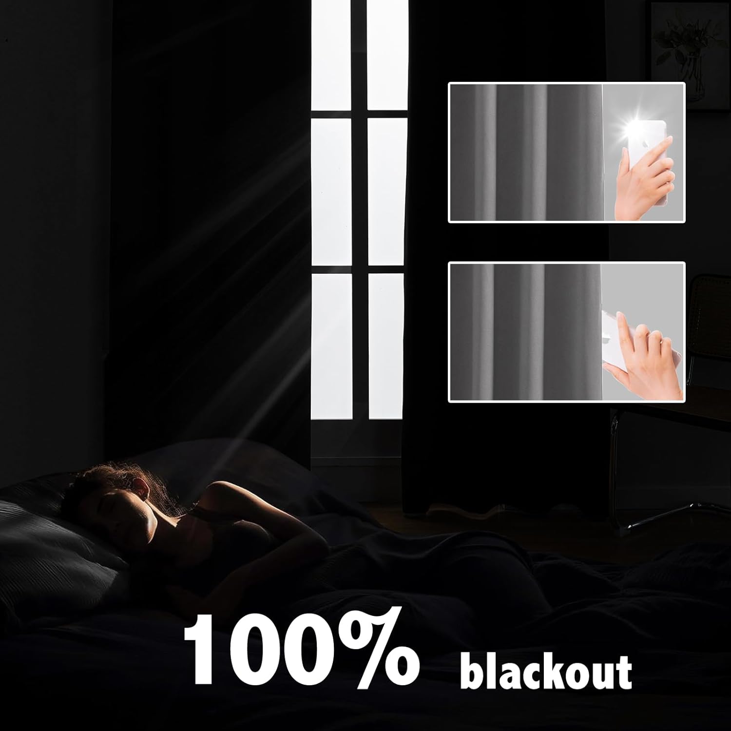 - Blackout Effect: Pure physical high-density fabric makes the curtains more blackout, completely blocking 100% of sunlight and UV rays. Provides a truly dark environment for restful sleep day or night. Note: Some natural light may show around the edges depending on window installation.