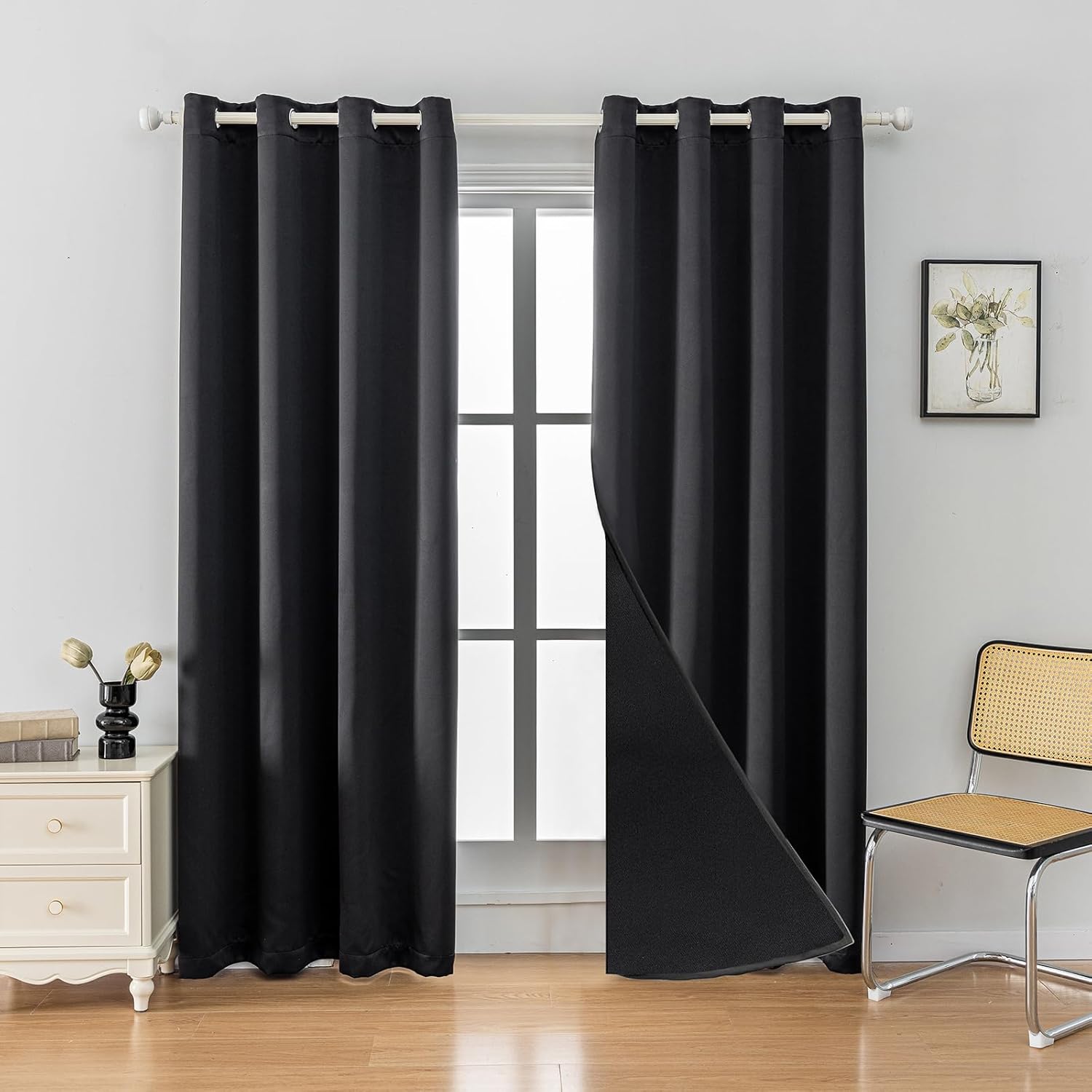 Anytime 100% Blackout Curtain Set, Thermal Insulated & Energy Efficiency Window Draperies for Guest Room, Full Shading Panels for Shift Worker and Light Sleepers(Black, 2 Panels, 52W x 84L)