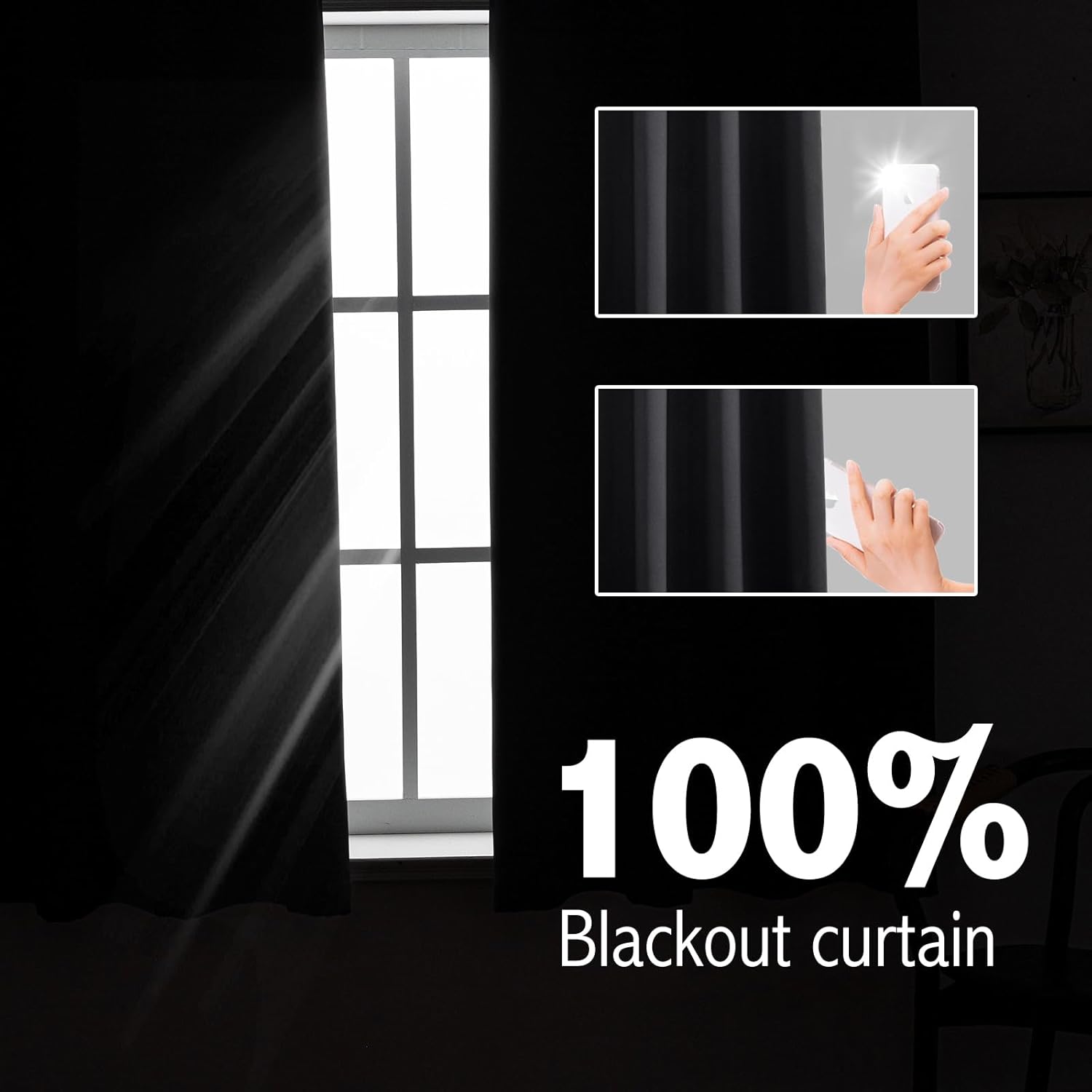Anytime 100% Blackout Curtain Set, Thermal Insulated & Energy Efficiency Window Draperies for Guest Room, Full Shading Panels for Shift Worker and Light Sleepers(Black, 2 Panels, 42W x 45L)