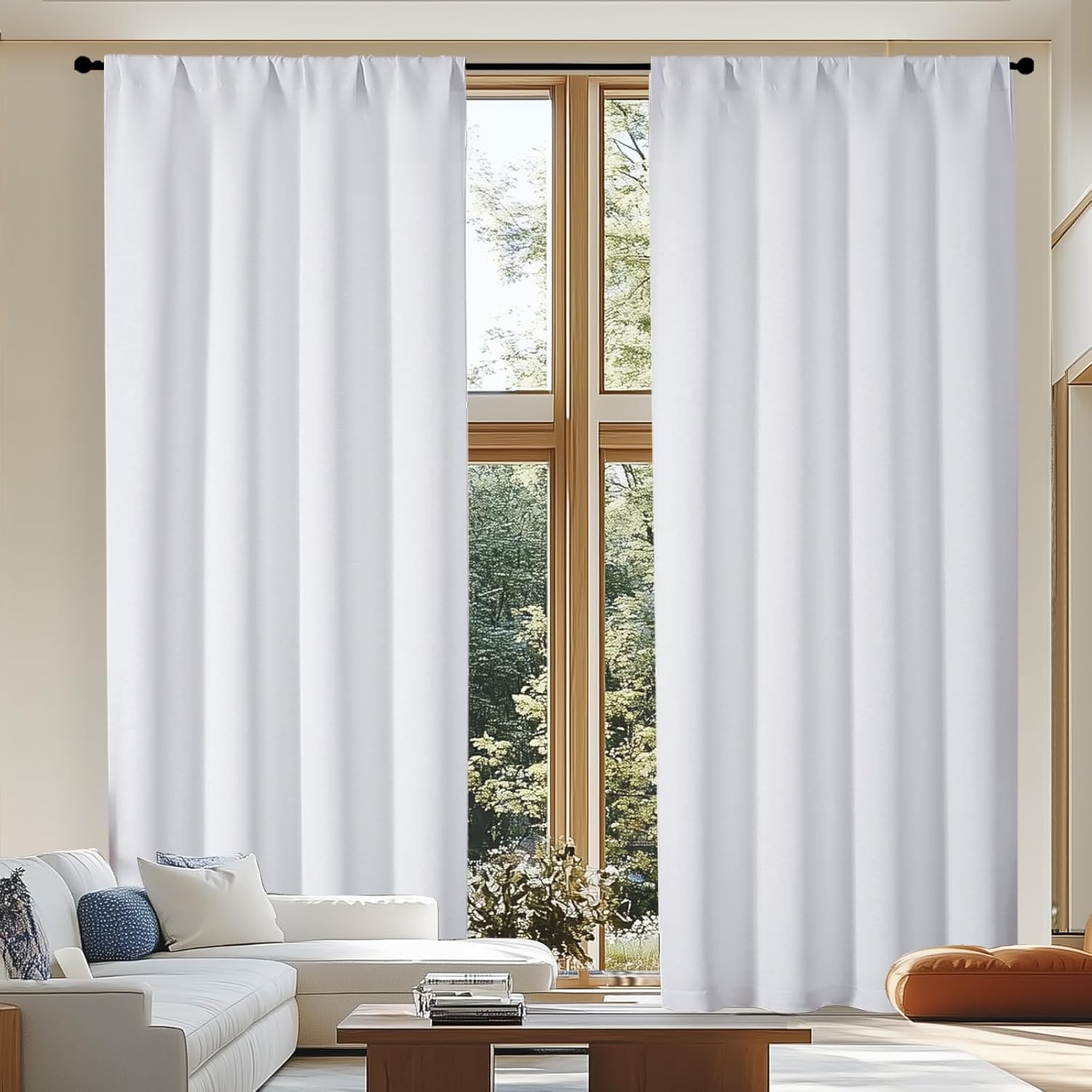 Simplebrand Ava Pure White Curtains for Patio 108 Inches Long 2 Panels Set, Room Darkening Window Treatment, Light Filtering Curtain Drapes, Soft Casual Rod Pocket Privacy Curtains, W50 x L108 Inch