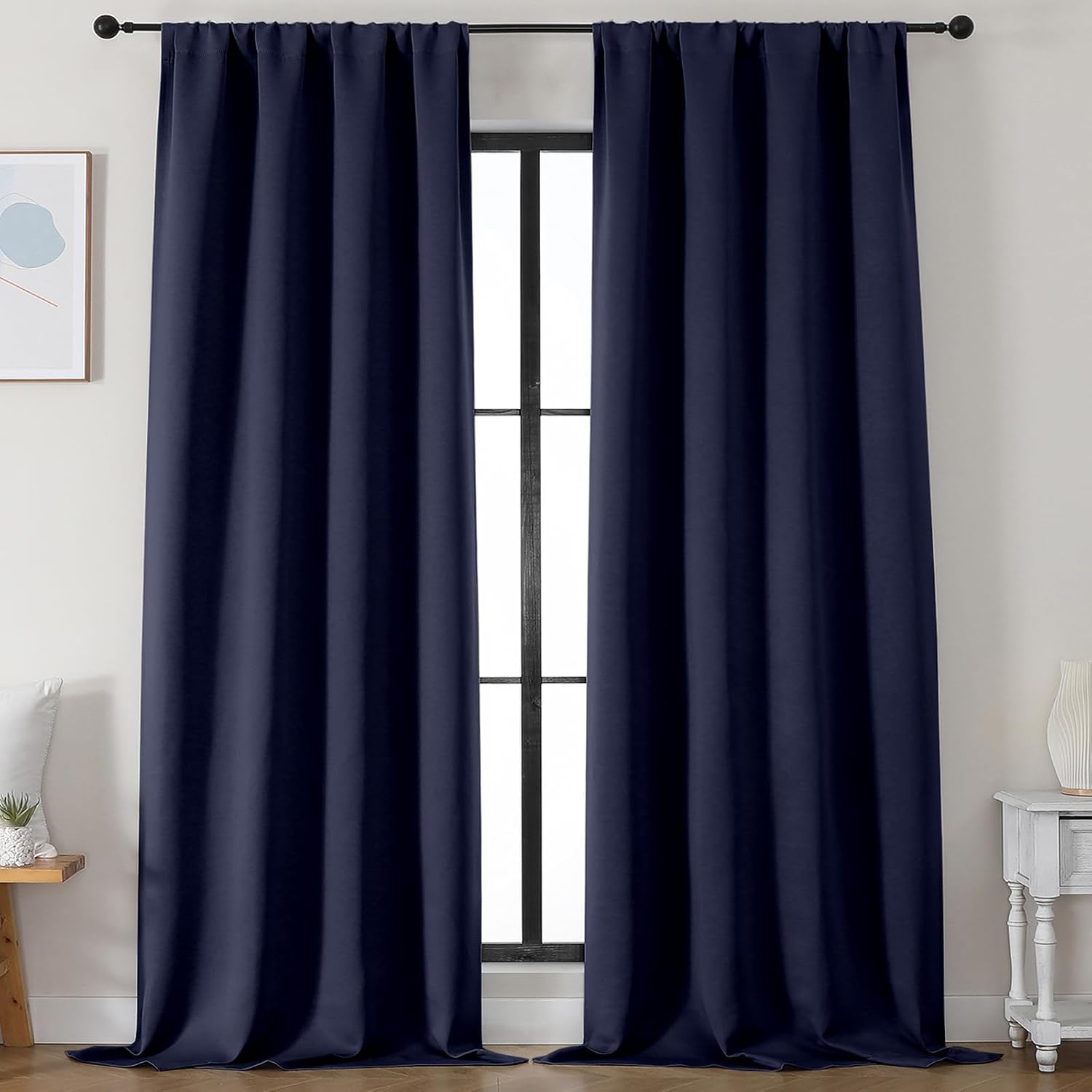Simplebrand Ava Navy Blue Blackout Curtains for Bedroom 96 Inches Long 2 Panels, Solid Thermal Insulated, Energy Saving Living Room Window Treatment Curtains Blackout Drapes, W50 x L96 Inch, Navy Blue