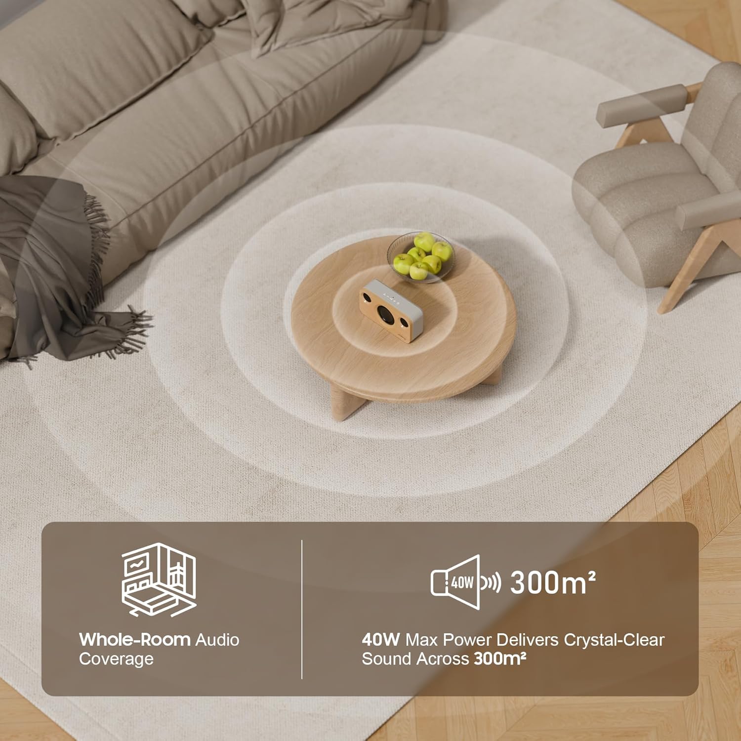 - Advanced Bluetooth 5.3 & Hands-Free Calls: Advanced Bluetooth 5.3 ensures ultra-stable wireless streaming up to 100 feet with faster pairing, lower power consumption, and strong interference resistance. The built-in microphone lets you answer and make calls directly from the speaker, making multitasking a breeze