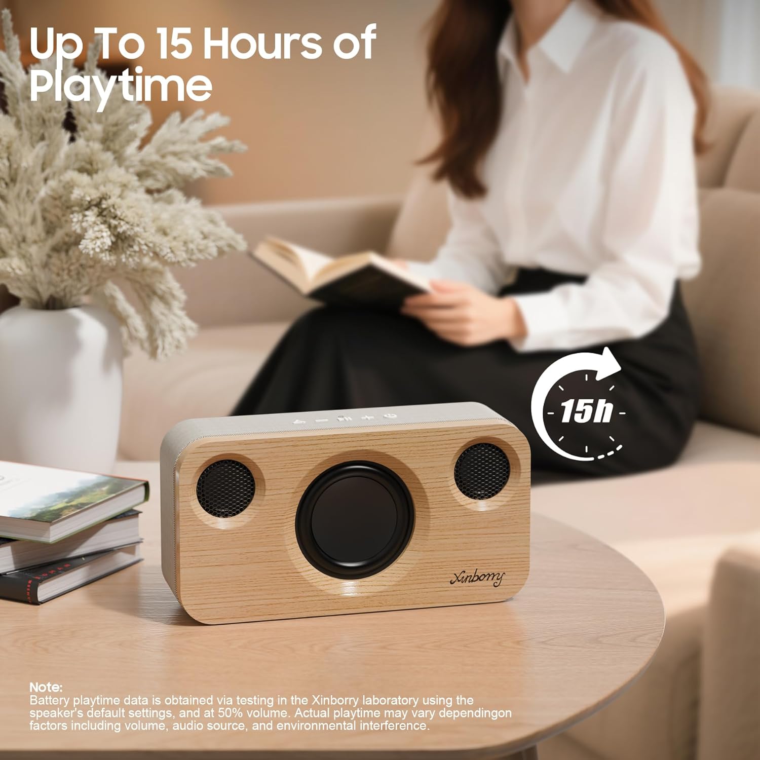Portable Bluetooth Speaker with Deep Bass, 40W(Peak),Bluetooth 5.3,15-Hour Playtime, AUX, TF Card, 2 Way Stereo Sound Wood Home Audio for Indoor, Party, Outdoor, Camping