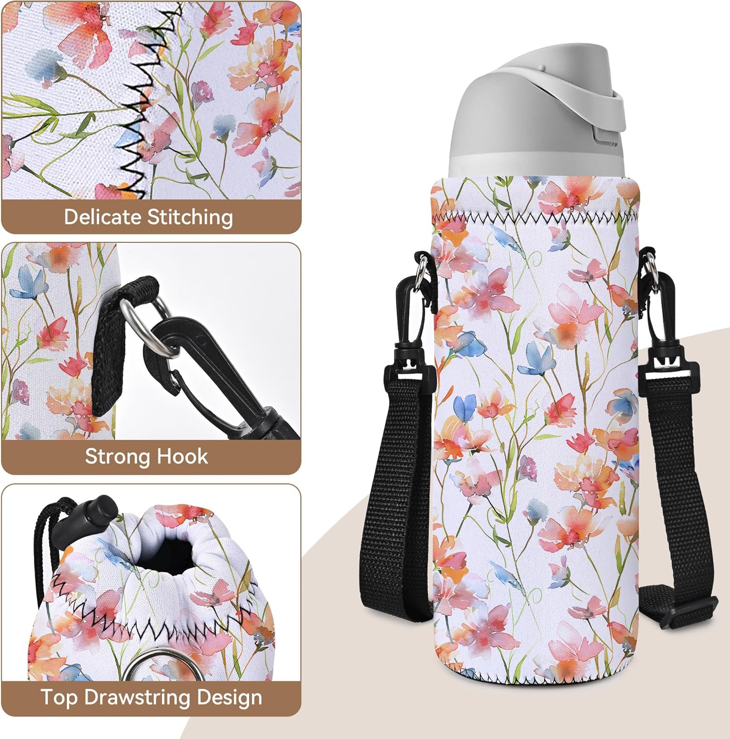 RICHEN Neoprene Water Bottle Carrier Bag with Adjustable Shoulder Strap,Insulated Water Bottle Cover for Stainless Steel/Glass/Plastic Bottles