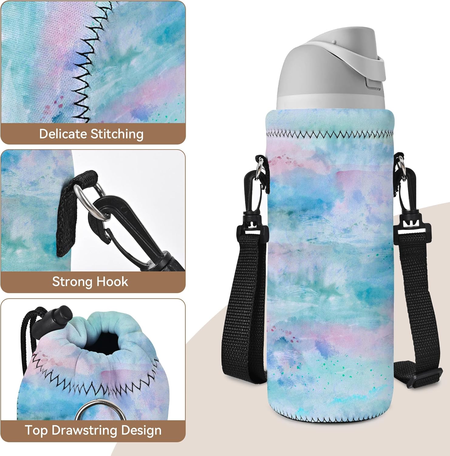 RICHEN Neoprene Water Bottle Carrier Bag with Adjustable Shoulder Strap,Insulated Water Bottle Cover for Stainless Steel/Glass/Plastic Bottles