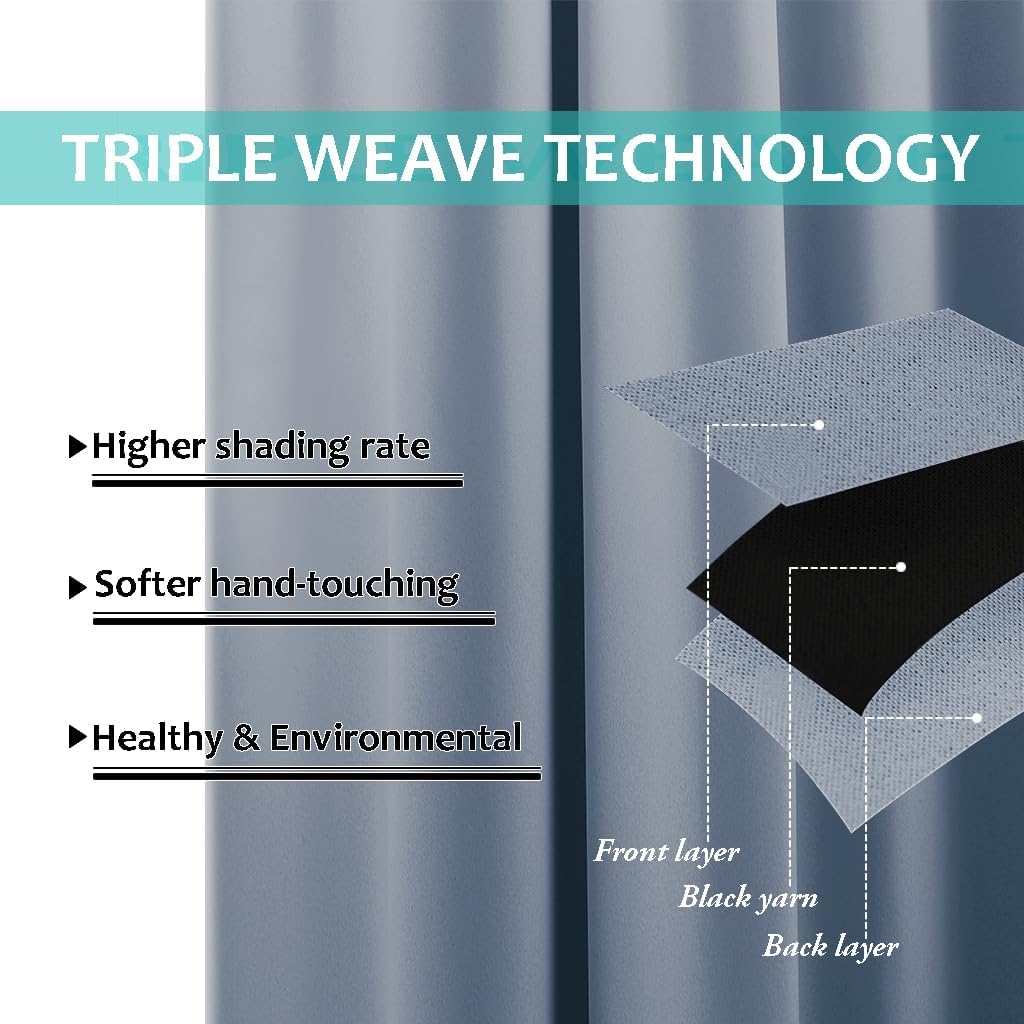 - Unique Design: Draperies constructed with 2 layers are all triple weave blackout fabric, balancing room temperature by insulating against summer heat and winter chill meanwhile protect privacy. No chemical coating, no formaldehyde, bring harmony to your family.