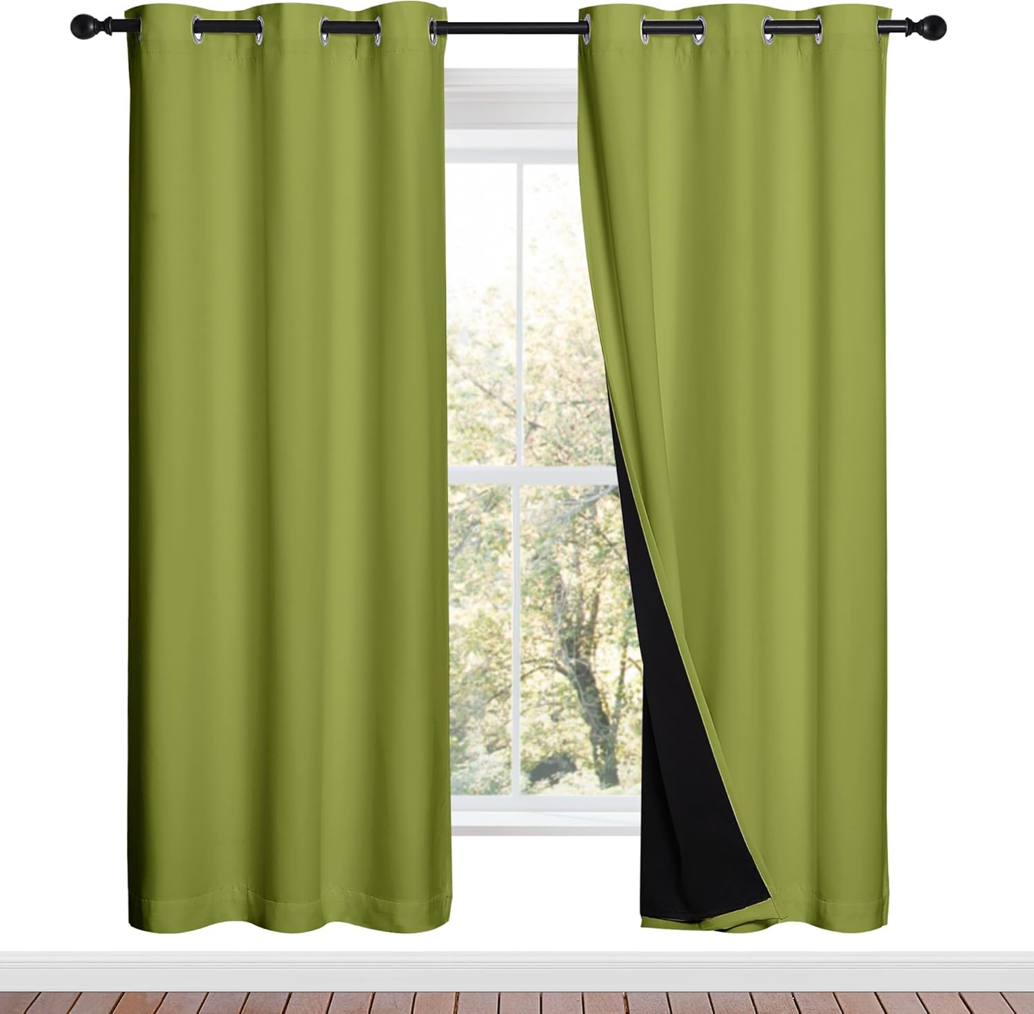 NICETOWN 100% Blackout Window Curtain Panels, Fresh Green, 2 Pieces, 42-inch Wide Per Panel, Full Light Blocking Drapes with Black Liner for Nursery, 72-inch Drop Thermal Insulated Draperies