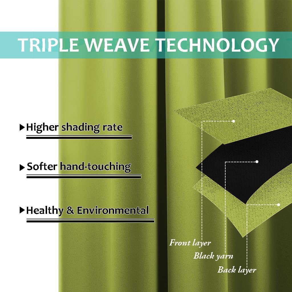 - Unique Design: Draperies constructed with 2 layers are all triple weave blackout fabric, balancing room temperature by insulating against summer heat and winter chill meanwhile protect privacy. No chemical coating, no formaldehyde, bring harmony to your family.