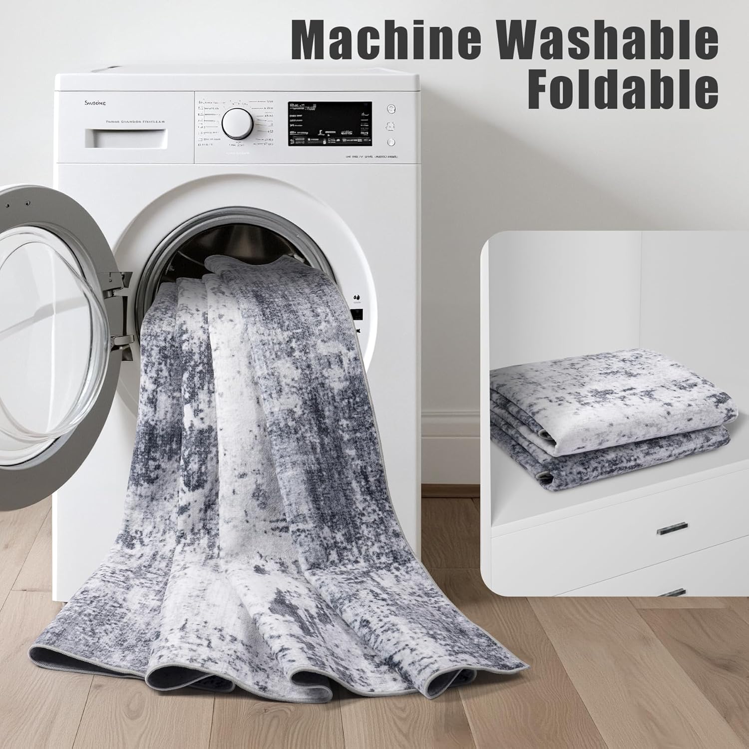 - Machine Washable Rug: Say goodbye to hidden dirt and cleaning hassles. The low soft pile of this 5x7 rug keeps most dirt on the surface, making it easy to clean with a carpet brush.The added bonus of it being machine washable makes it a breeze to maintain and saves you time. 6'x9 'and above are recommended to use nearby commercial laundry rooms