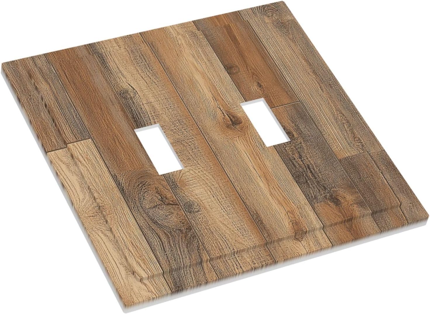Decorative Switch Plates Retro Rustic Brown Wood Grain 2 Gang Double Toggle Outlet Light Switch Cover Wall Plate Electrical Faceplate For Farmhouse Cabin Decor