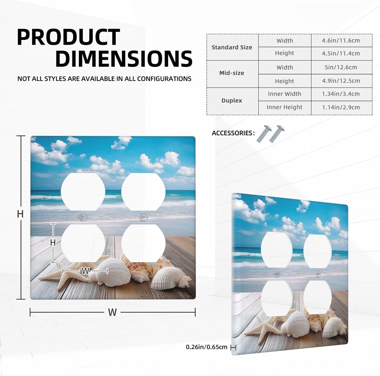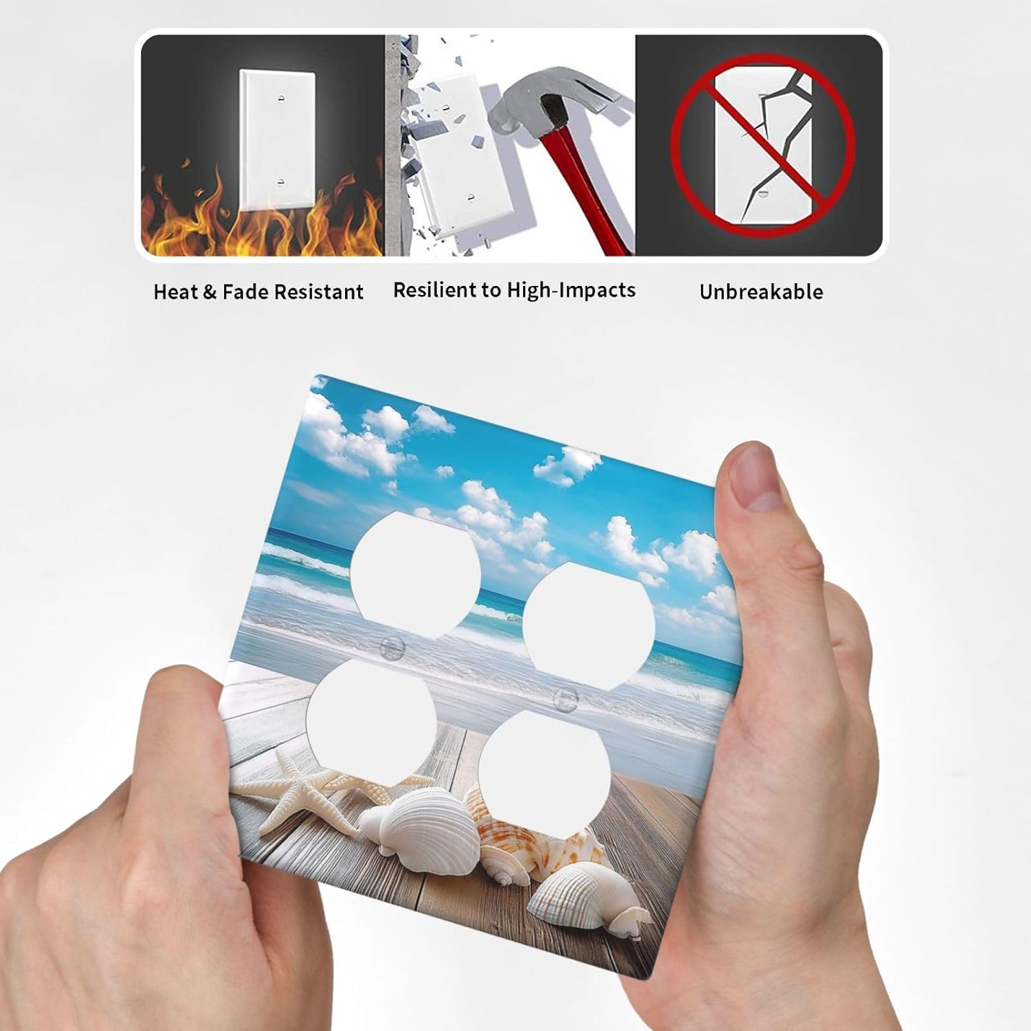 Outlet Covers Beach Waves Brown Wood Starfish Shells 2 Gang Double Duplex Decorative Light Switch Covers Electrical Wallplates Socket Faceplate For Bathroom Living Room Decor