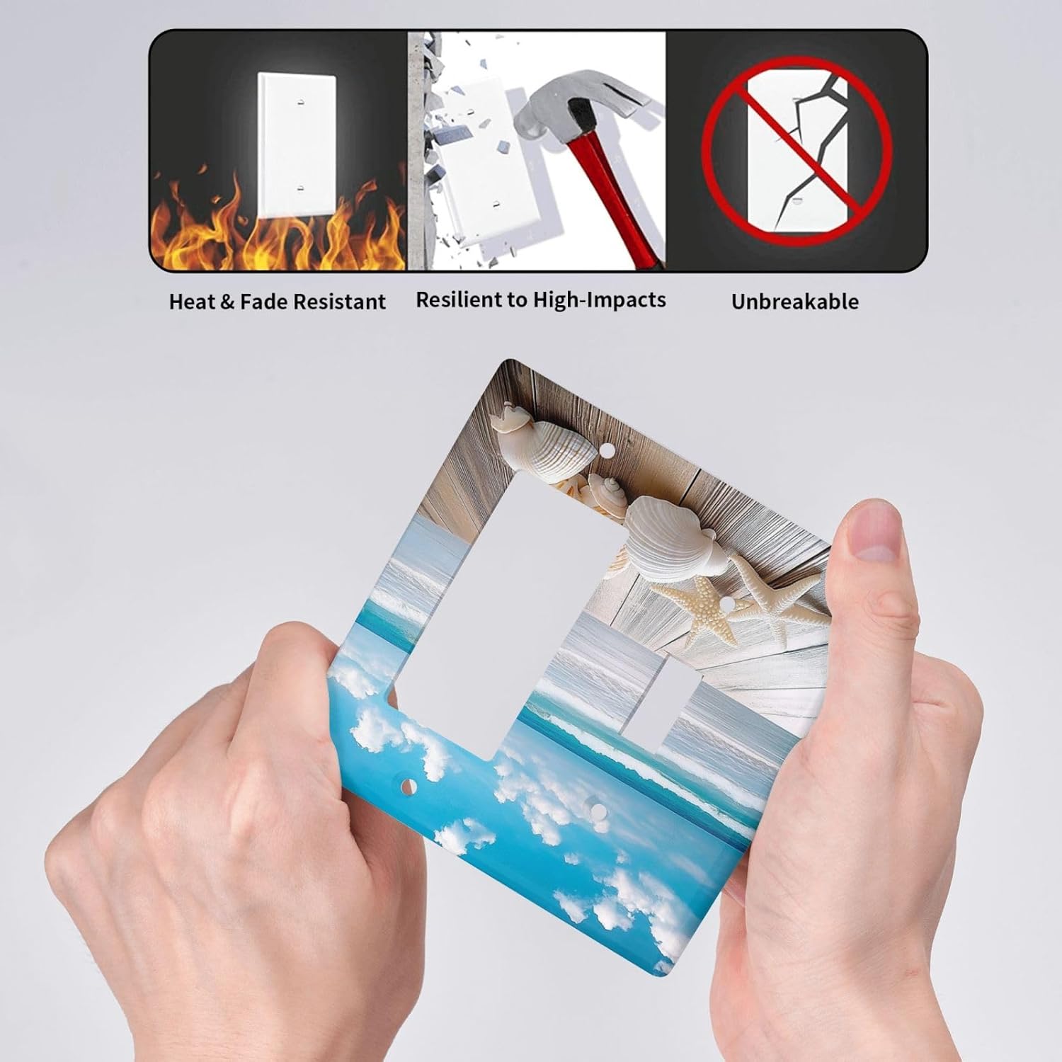 Outlet Covers Beach Waves Brown Wood Starfish Shells 1 Toggle 1 Rocker Combination Decorative Wall Plate Electrical Switch Plates Light Switch Cover Plate For Bathroom Living Room Decor