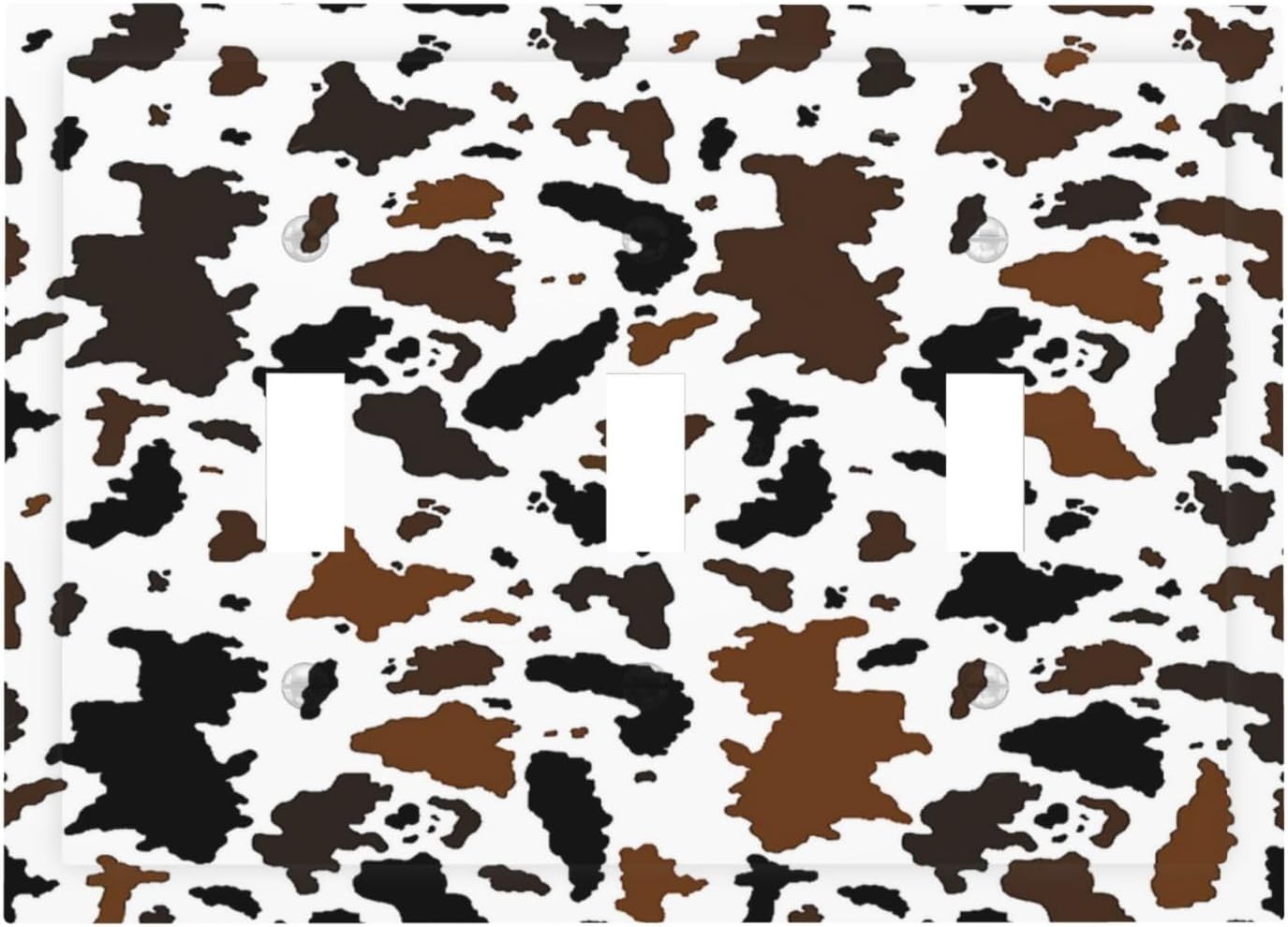 Decorative Switch Plates Rustic Cowhide Highland Cow Milk Cow 3 Gang Wall Plate Triple Toggle Light Switch Cover Faceplate Electrical Wall Panels For Farmhouse Home Decor