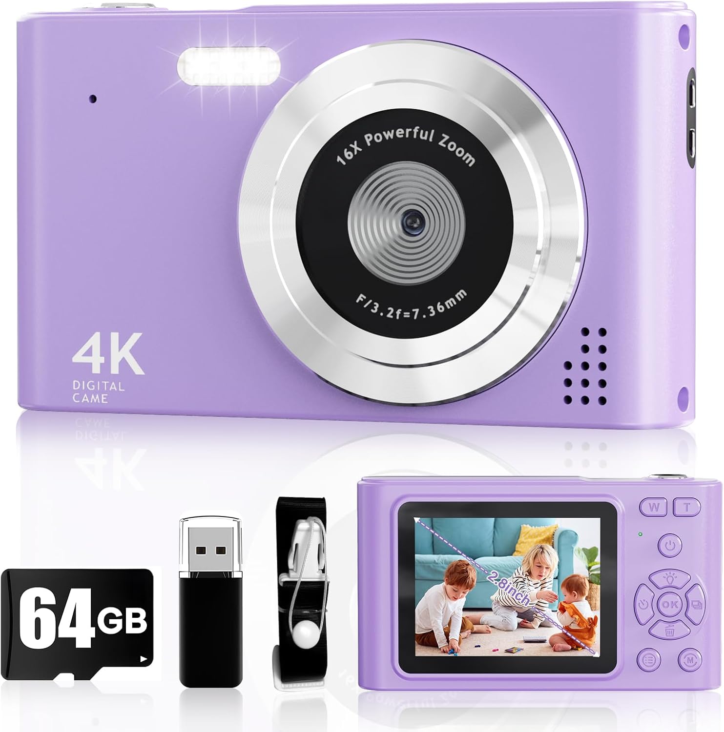 - 【Excellent Support for This Gift】One year worry-free guarantee - refund and replacement. The digital camera comes with an SD card, strap, battery, adapter, data cable, and exquisite packaging box, providing everything you need. It is the perfect gift for boys, girls, and teenagers on birthdays, Christmas, or any important occasion. It is also the first truly meaningful camera for children who love taking videos and photos.