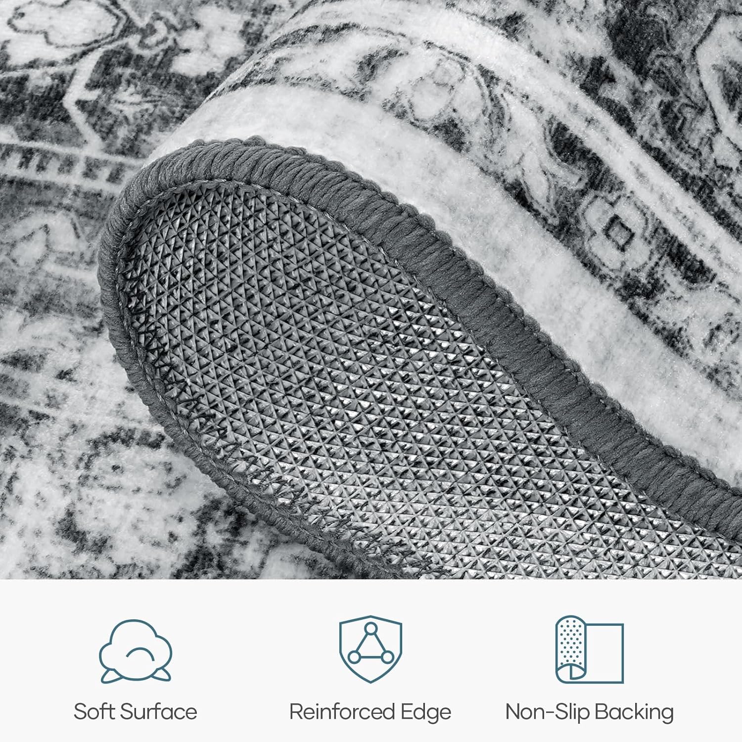 - Non-Slip Backing: The built-in TPR (Thermoplastic Rubber) backing keeps the area rug securely in place while protecting your floors. Even with active kids or playful pets, it stays put – perfect for homes with children and pets