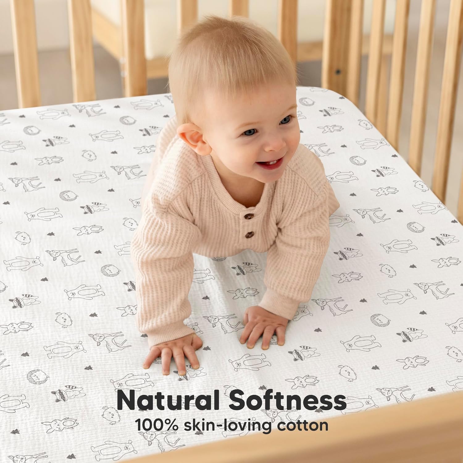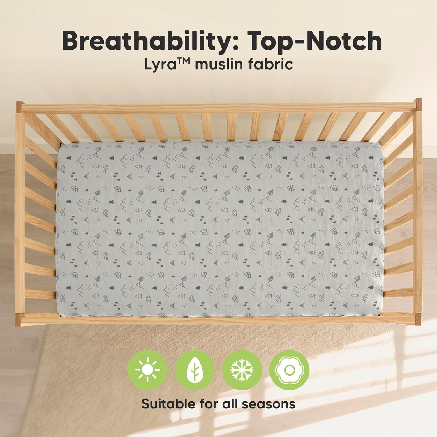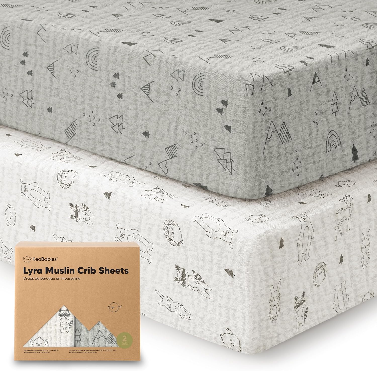 - Lyrically Soft & Breathable - KeaBabies Lyra Muslin Organic Cotton Crib Sheets Fitted keep your baby cozy all night. Exceptionally breathable crib sheets for all-seasons, these toddler sheets soothe baby like a lullaby for peaceful, restful sleep.