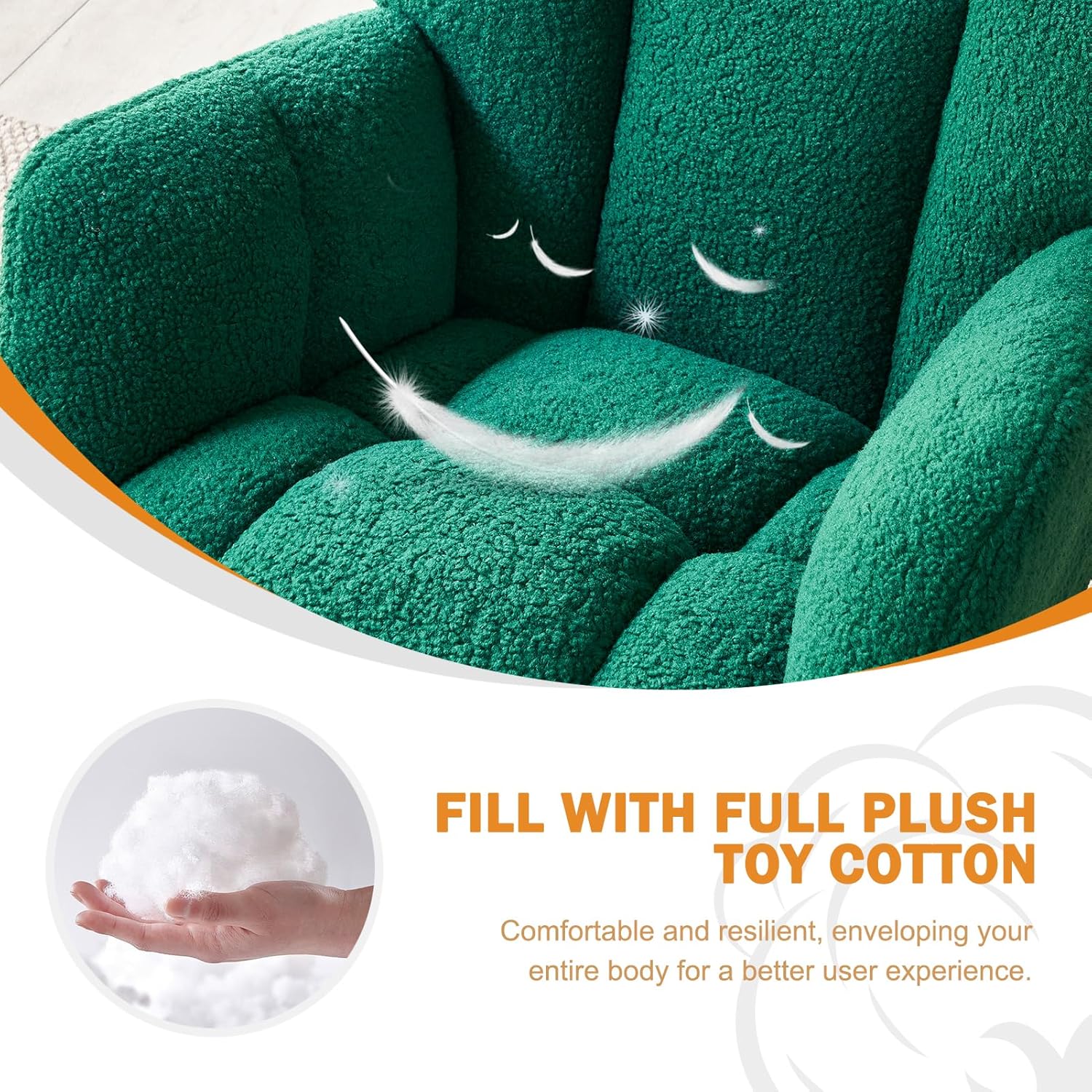 Kiztir Rocking Chair Nursery, High Backrest Teddy Glider Rocker Upholstered Rocker Recliner Modern Rocking Accent Chairs for Bedroom, Living Room, Offices (Green)