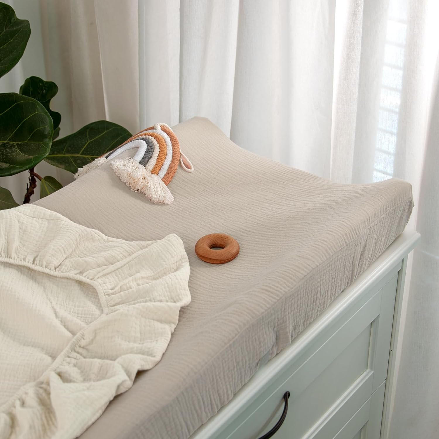 - SOFT AND BREATHABLE: Our changing pad covers is made of 100% muslin cotton. The touch is soft and comfortable, which is very suitable for infant sensitive skin. Lightweight and breathable fabric will keep your baby cool and comfortable.