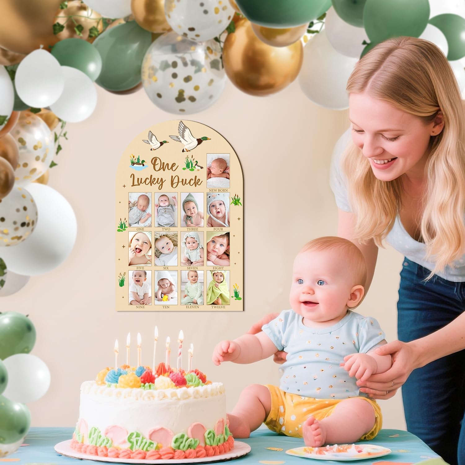 - 3D Mallard Duck Design: Document baby's precious first year with our adorable mallard duck wooden photo display board! Made from premium thick wood for lasting durability. Perfect as a nursery decor or as the highlight of your baby's first birthday celebration, this cute milestone board turns fleeting moments into timeless memories you'll treasure forever.