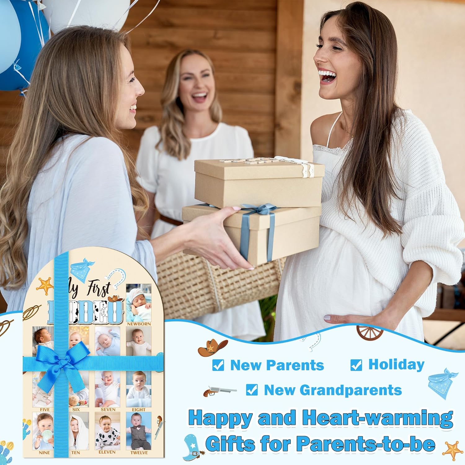 - THOUGHTFUL GIFT FOR NEW PARENTS: This my first rodeo birthday photo display board makes the thoughtful gift for 1st birthday, baby shower, Christmas, and other special occasions. Celebrate baby's precious milestones with a beautiful display that new parents will treasure forever. Ideal for nursery decor or as a centerpiece for birthday celebrations, it preserves those unforgettable first year memories in the sweetest way.