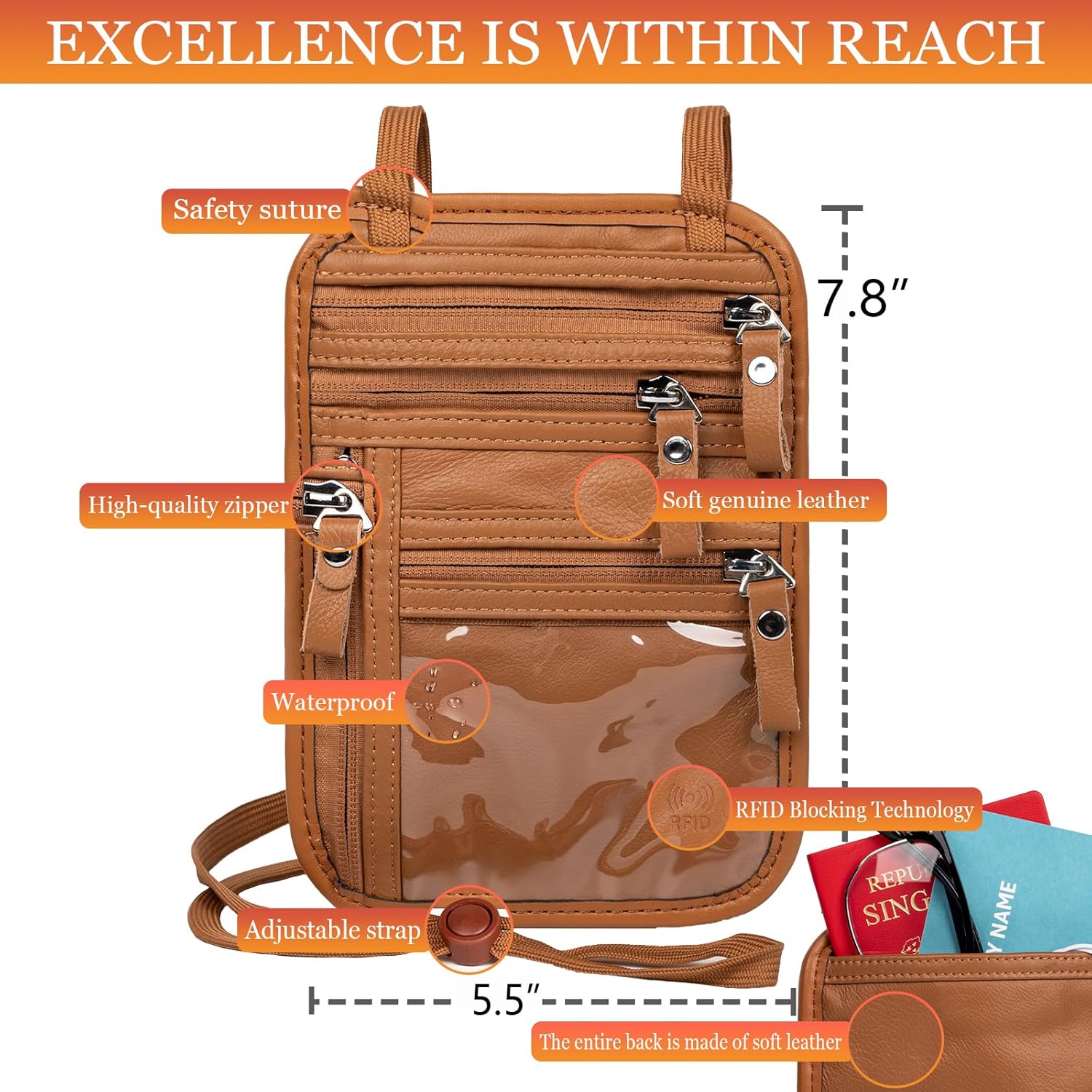 Neck Wallet - Rfid Wallet Women - passport holder for travel - Travel Wallet Passport Holder For Travel Women - 10.3x6.8inch (Yellowish Brown)