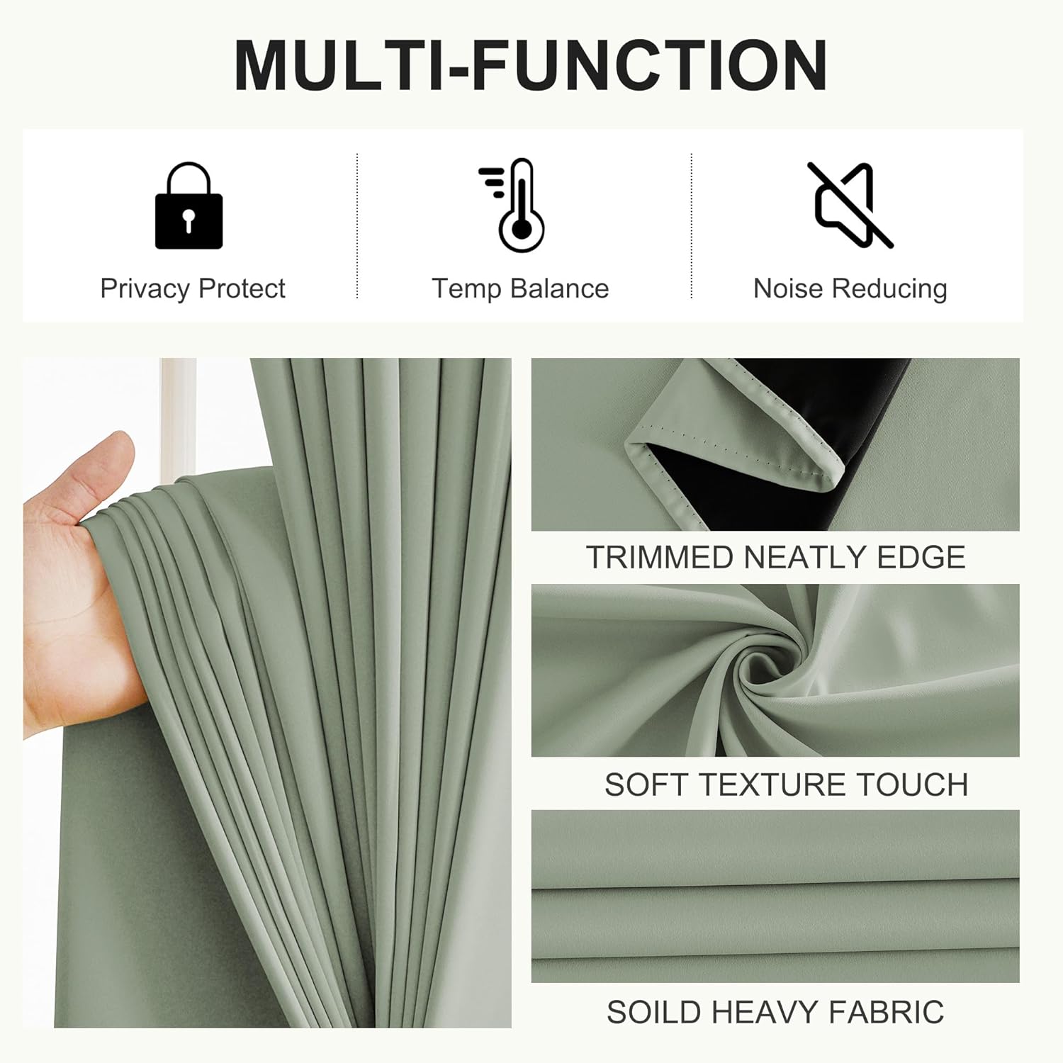 NICETOWN Sage Green Curtains 52 x 84 inches Long, 100% Blackout Curtains Set of 2 Panels Thermal Insulated Privacy Window Curtains for Bedroom Living Room
