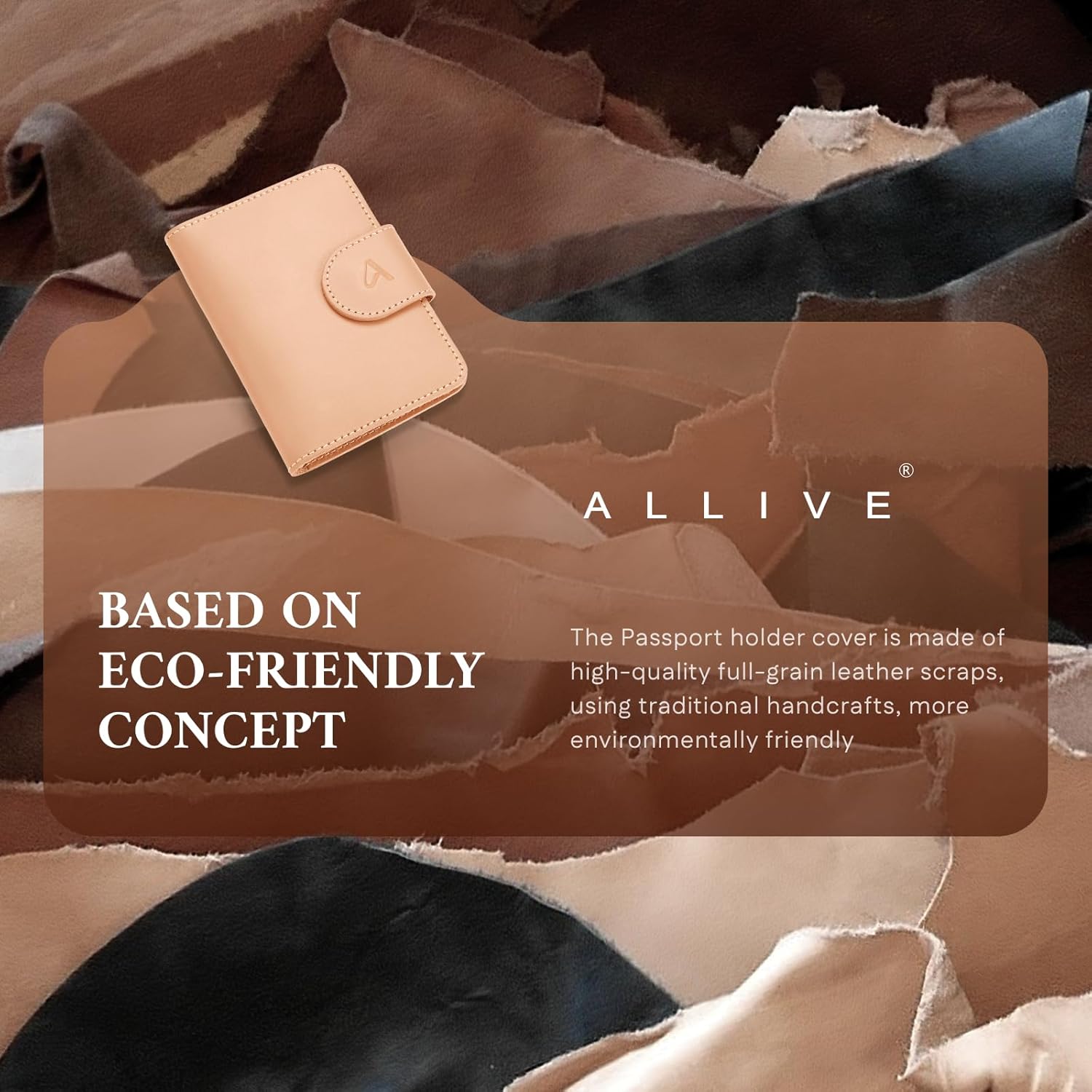 ALLIVE Genuine Leather Passport Holder, Rfid Passport Holder for Travel with AirTag Hidden, Passport Cover Wallet Travel Must Haves Airport Essentials, Passport Cover Travel Gifts (Beige)