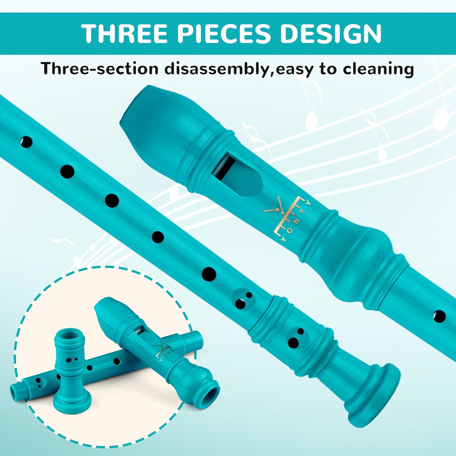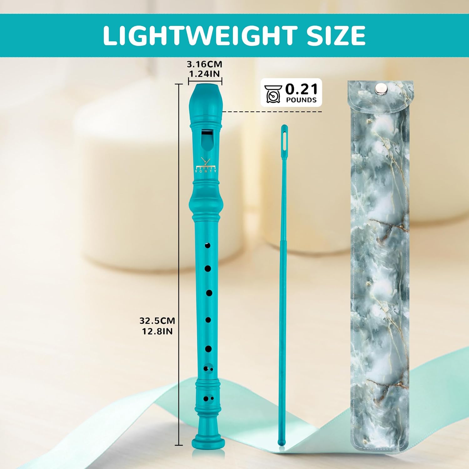 Soprano Recorder 8-Hole Instrument for Beginners Kids Students, Baroque Style C Key Flute with Cleaning Rod & acking Bag for Education & Entertainment-Turquoise