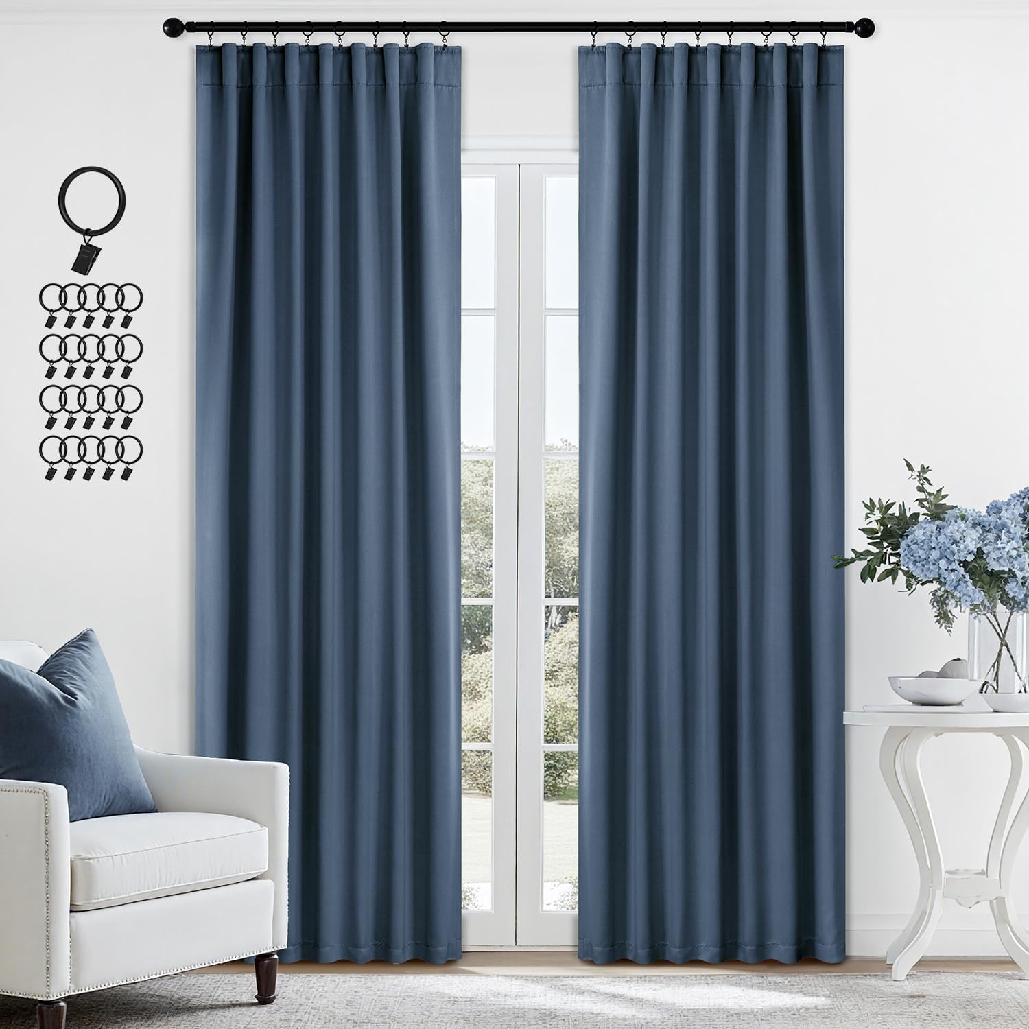 ANRODUO Back Tab Blackout Curtains for Bedroom Living Room, Rod Pocket Pinch Pleated Thermal Insulated Room Darkening Curtains 90 Inches Long 2 Panels, Stone Blue, 42 x 90 Inch