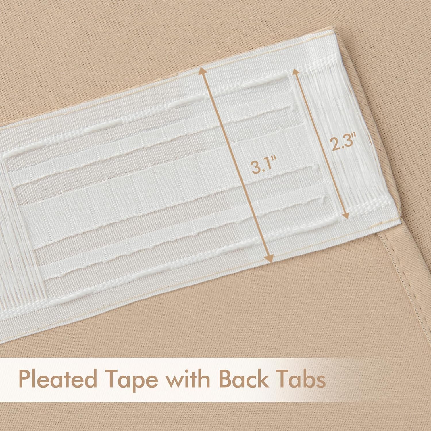 MIULEE Beige Back Tab Blackout Curtains 72 Inch Length 2 Panels Set for Living Room Bedroom Privacy, Rod Pocket/Pinch Pleat Thermal Insulated Room Darkening Pleated Light Blocking Drapes