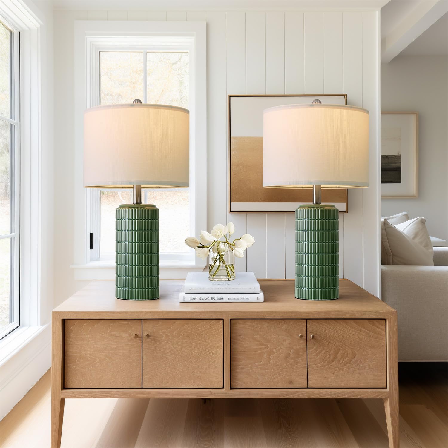 PoKat 23" Dark Green Ceramic Table Lamps Set of 2, Modern Table Lamps for Living Room, Farmhouse Lamps for Bedroom Night Stands, Traditional Nightstand Desk Decor Lamps