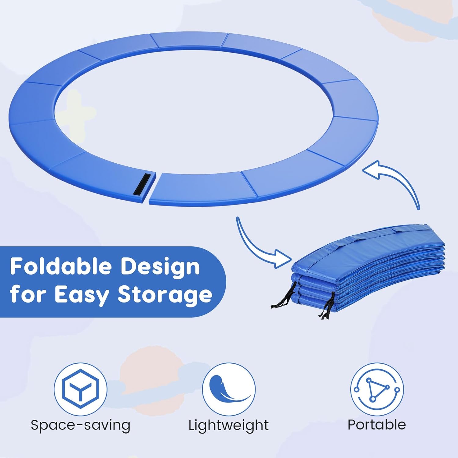 - [Foldable Design]: Thanks to the folding design, this trampoline safety pad is easy to store after use without taking up much space. Meanwhile, the lightweight and portable design allows you to easily carry it to your destination.