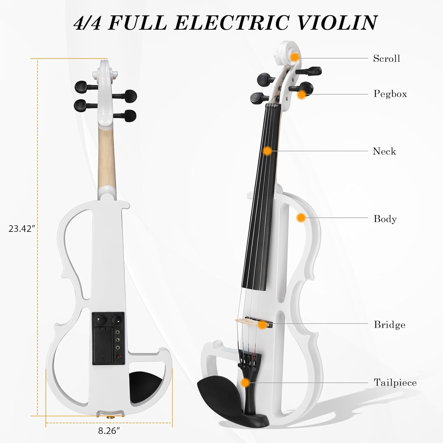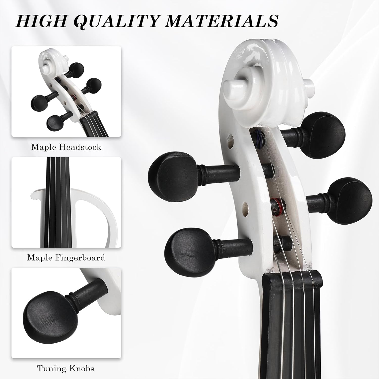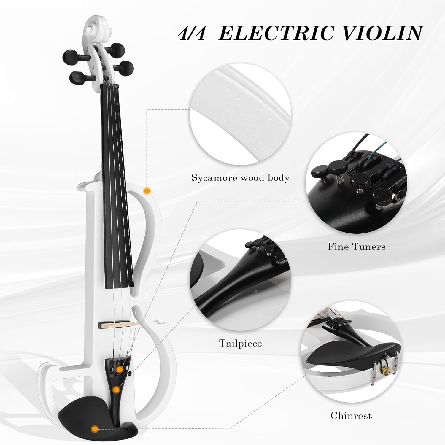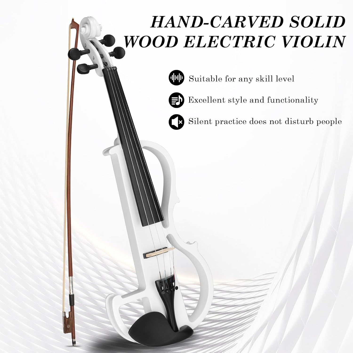 Ktaxon Full Size Electric Violin, 4/4 Acoustic Silent Electric Violin for Beginner Adults Teens with Ebony Fittings, Case, Bow, Headphone, Rosin and Extra String (White)