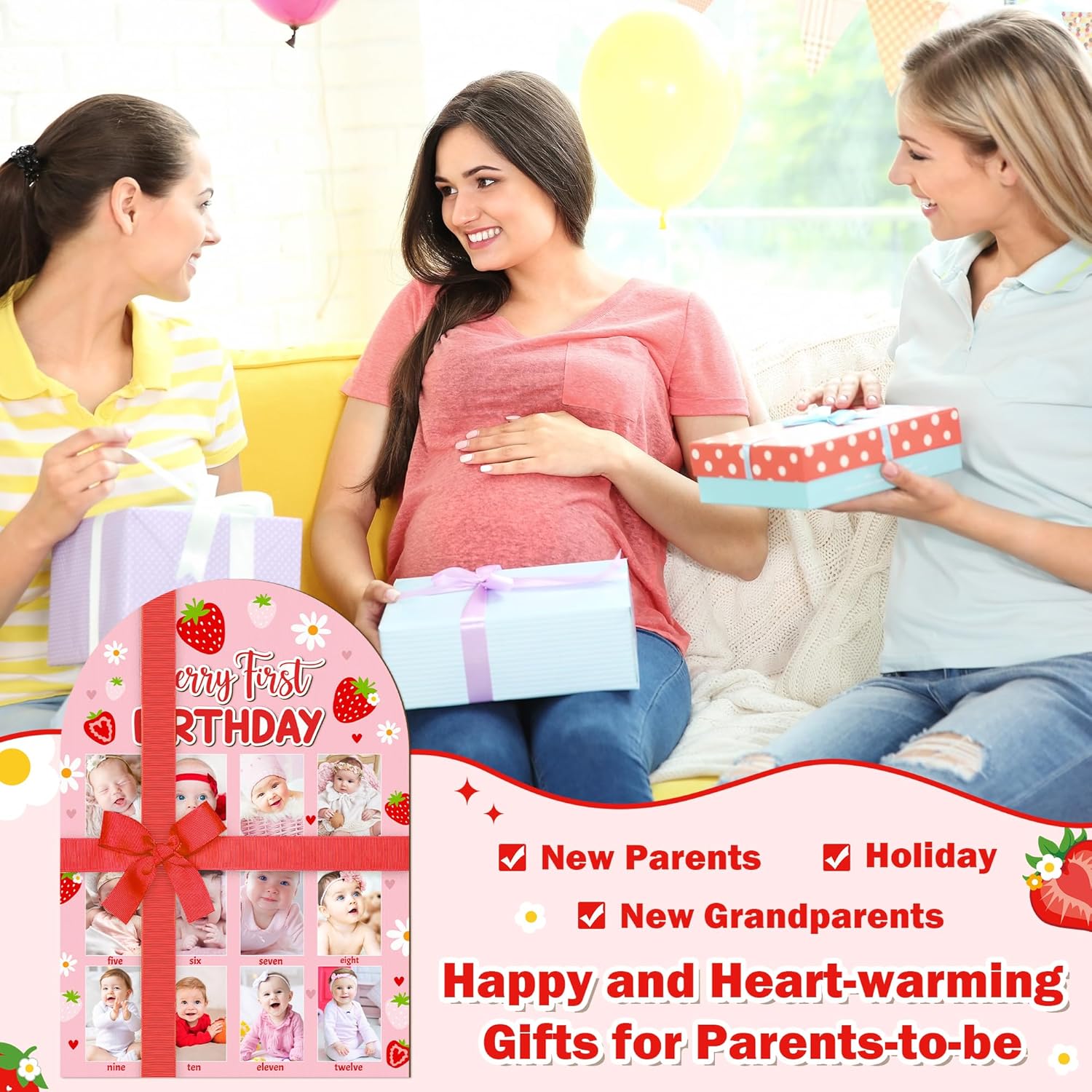 - Thoughtful Gift for New Parent: This adorable 1st birthday photo display board makes the thoughtful gift for baby showers, 1st birthdays, Christmas, and other special occasions. Celebrate baby's precious milestones with a beautiful display that new parents will treasure forever. Ideal for nursery decor or as a centerpiece for birthday celebrations, it preserves those unforgettable first-year memories in the sweetest way.
