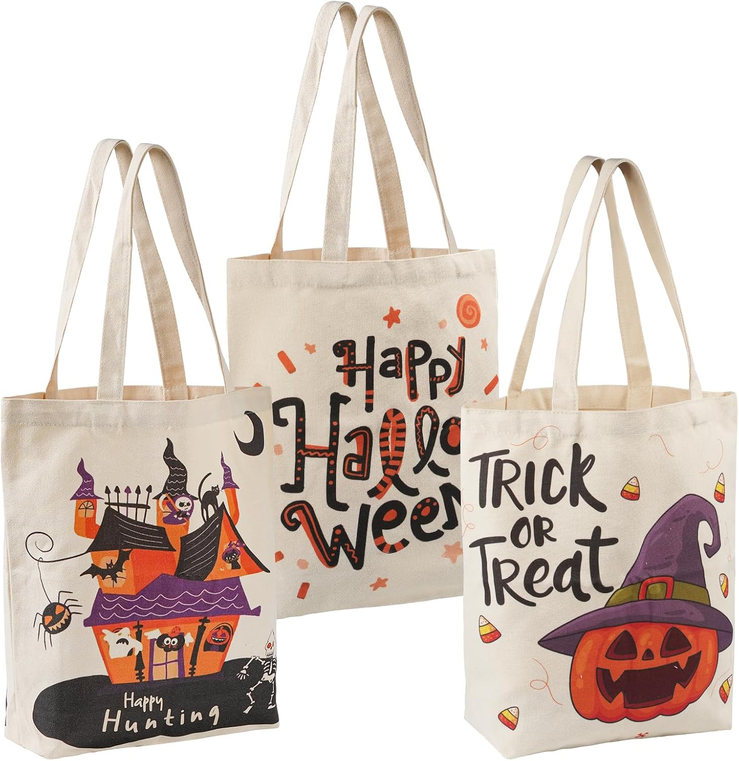 - Quantity: 3 different designs Halloween tote bags
