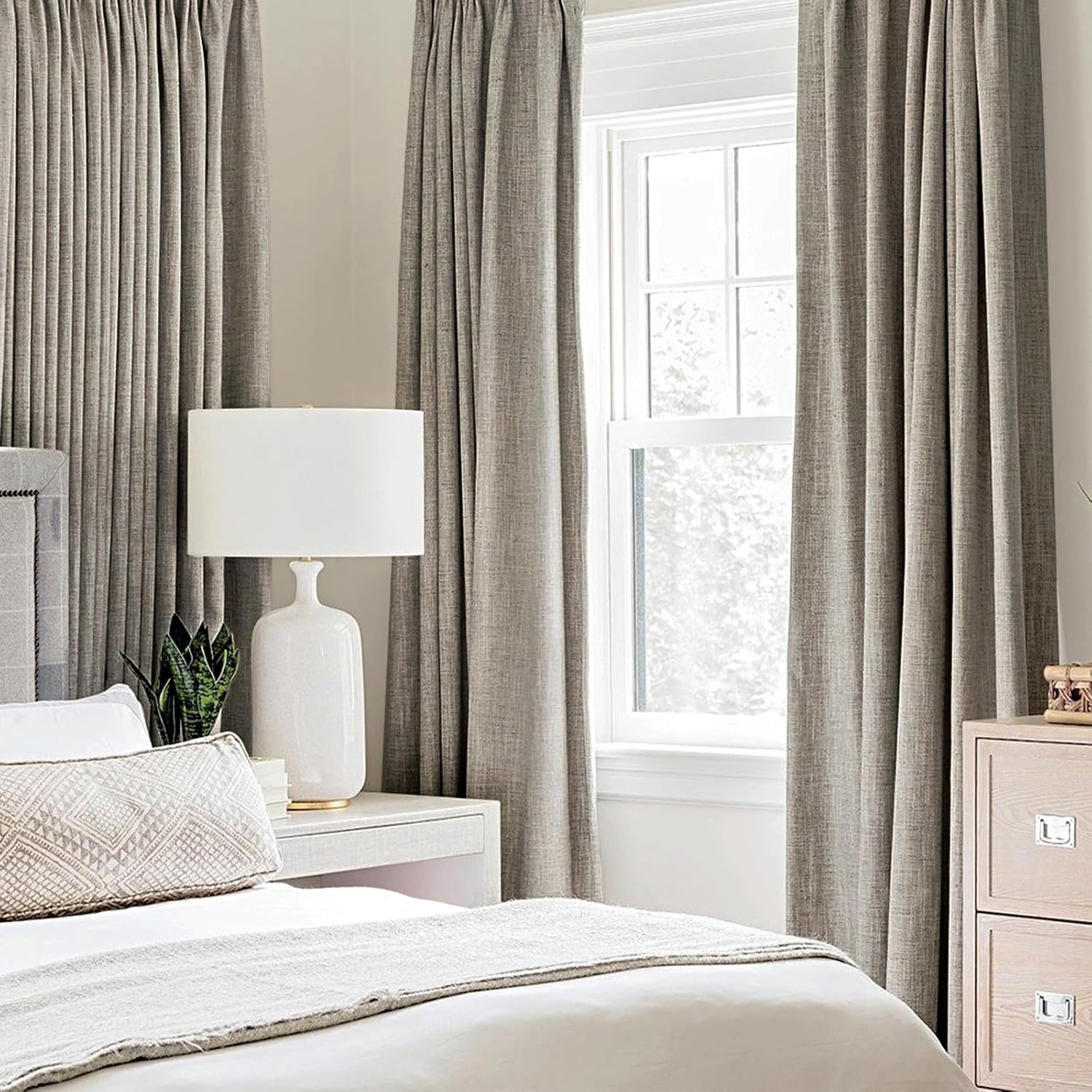 MIULEE Linen Texture Curtains for Bedroom Solid 100% Blackout Thermal Insulated Linen Curtains Grommet Room Darkening Drapes for Living Room Nursery 52x54 Inch (2 Panels)