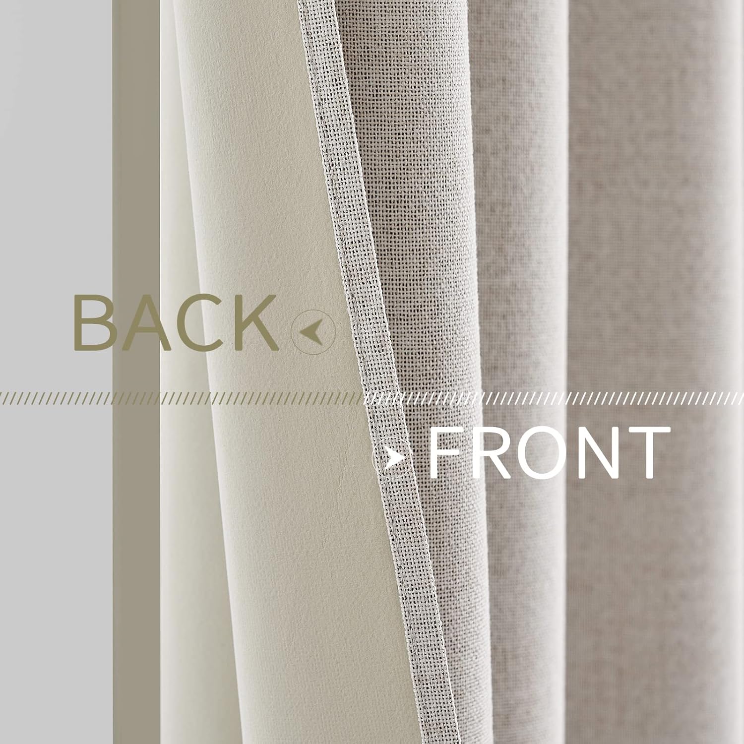 MIULEE 100% Blackout Linen Textured Curtains for Bedroom Solid Thermal Insulated Ivory Grommet Room Darkening Curtains & Drapes Luxury Decor for Living Room Nursery 62 x 84 Inch (2 Panels)