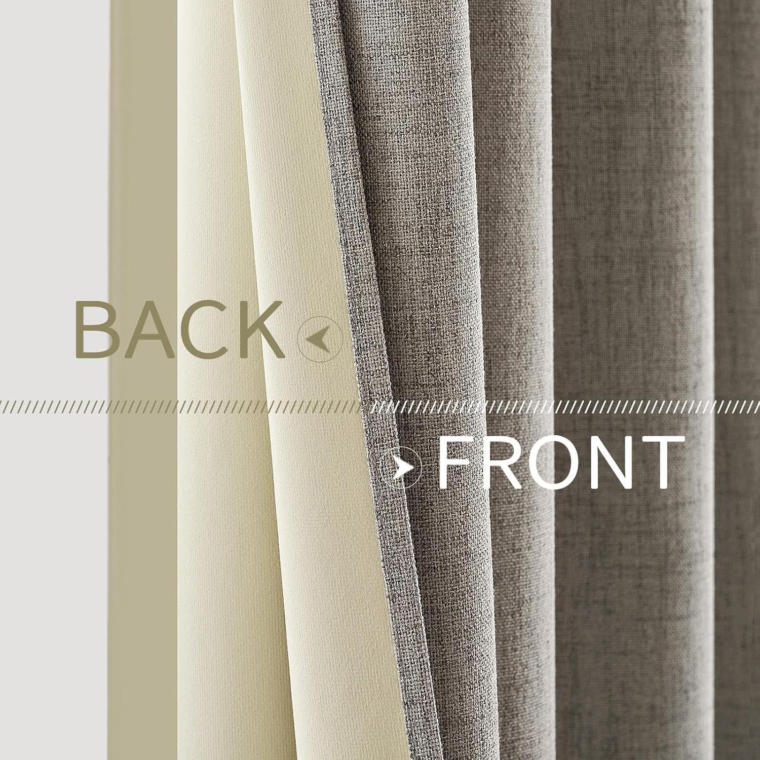 MIULEE Linen Texture Curtains for Bedroom Solid 100% Blackout Thermal Insulated Linen Curtains Grommet Room Darkening Drapes for Living Room Nursery 52x63 Inch (2 Panels)