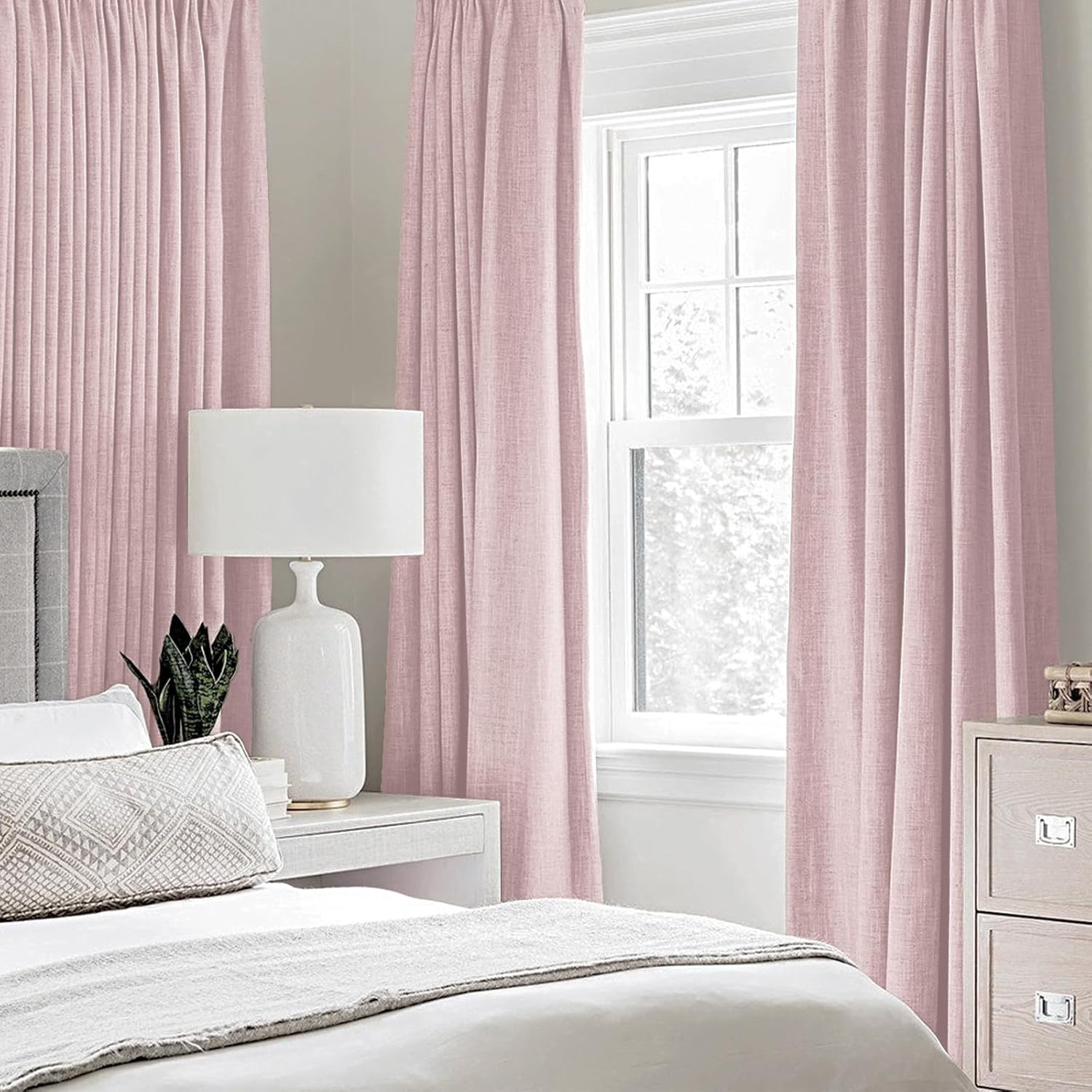 MIULEE Linen Texture Curtains for Bedroom Solid 100% Blackout Thermal Insulated Pink Curtains Grommet Room Darkening Drapes for Living Room Nursery 52x63 Inch (2 Panels)